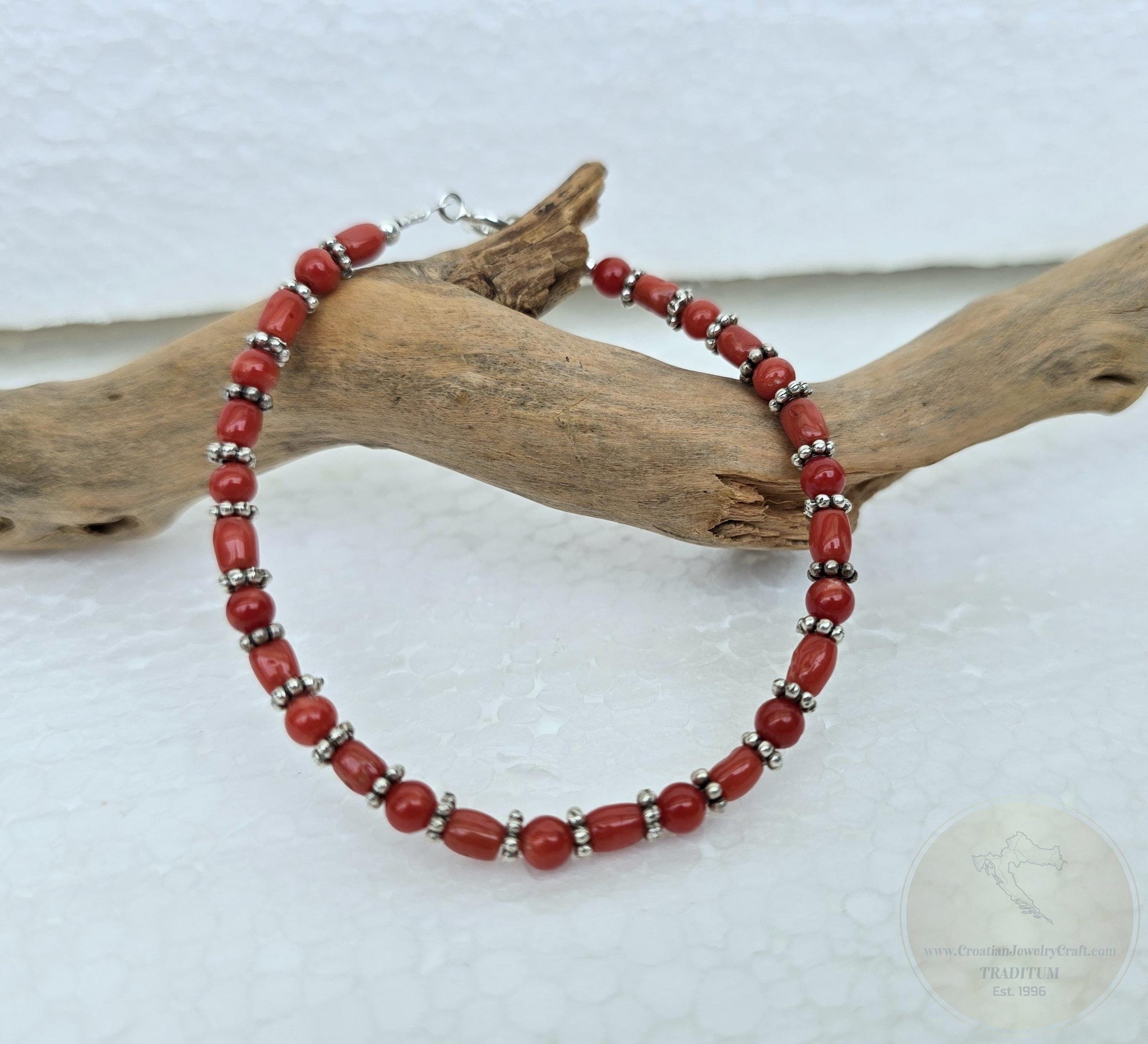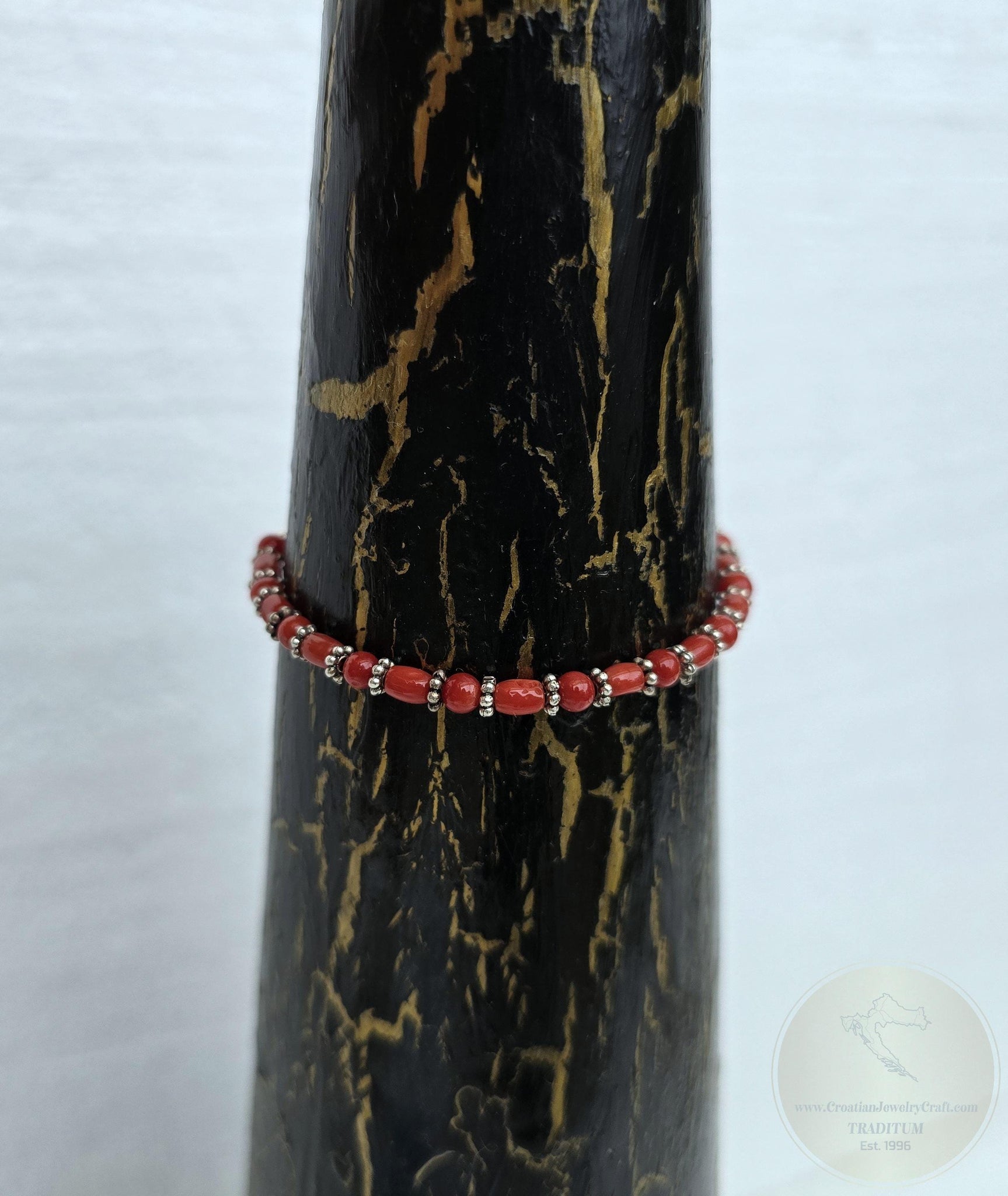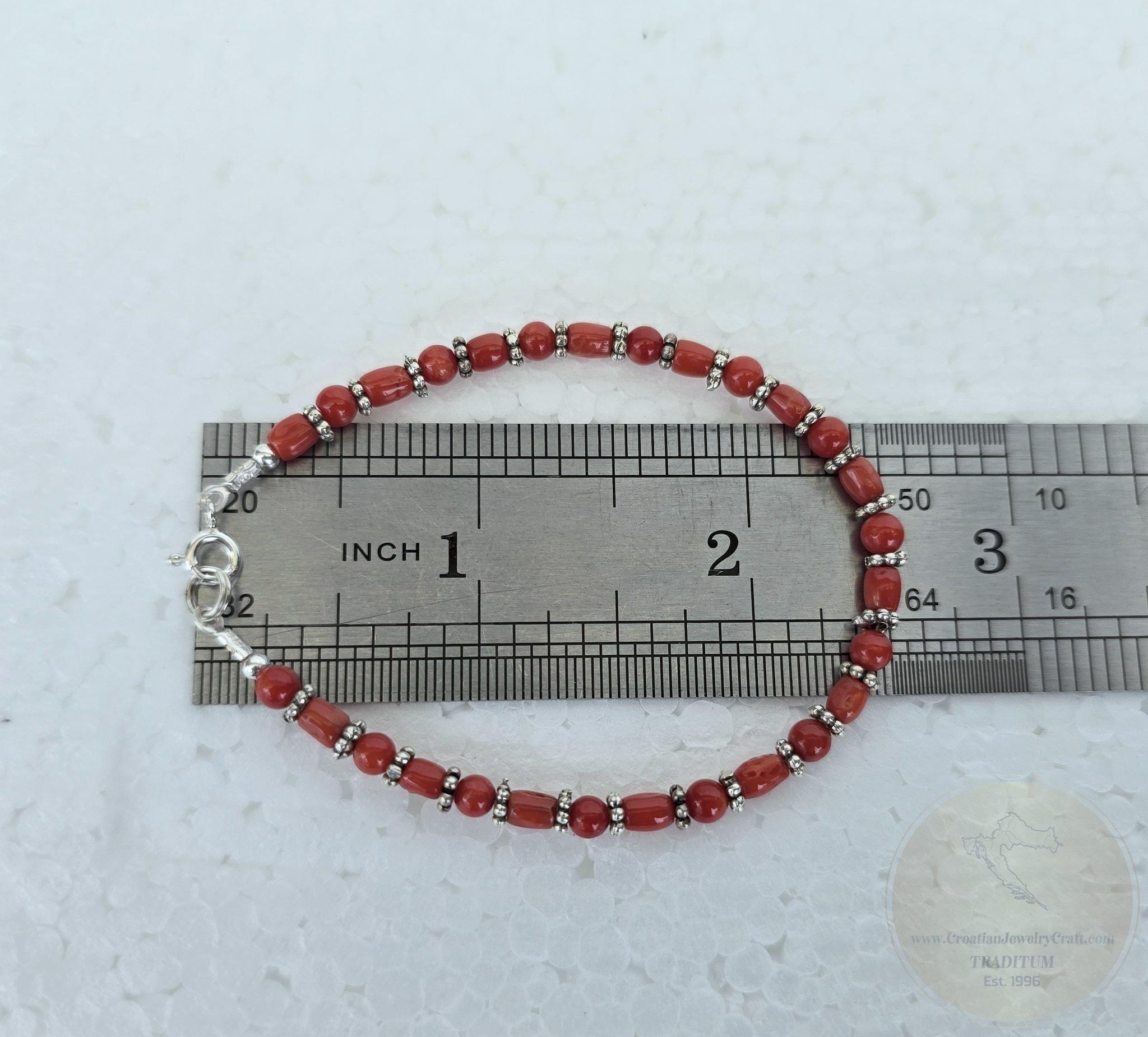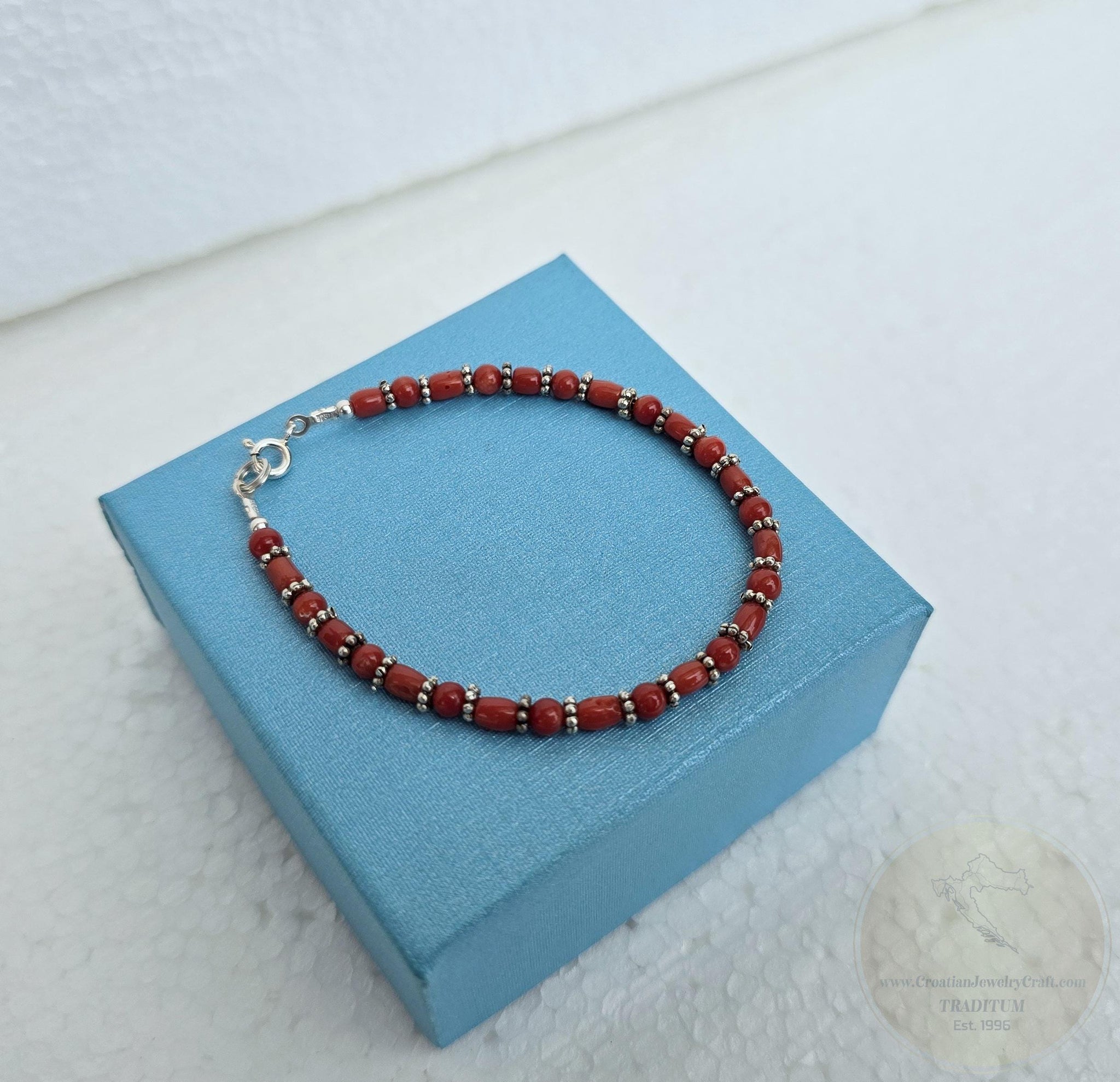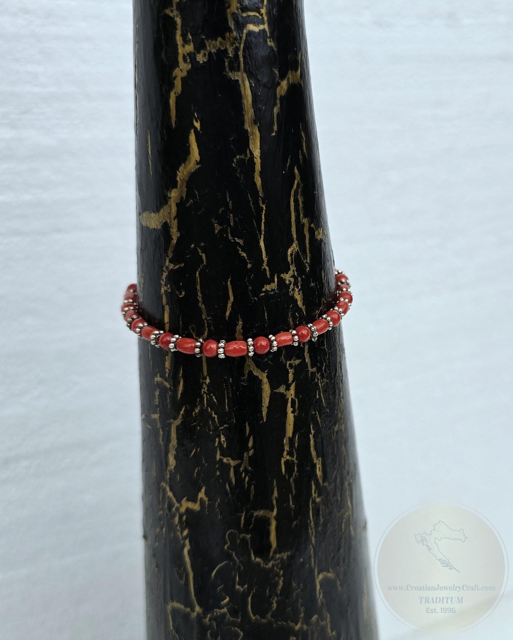 Small Bead Red Coral Bracelet, Mediterranean Coral, Sterling Silver Natural Coral Jewelry, Handmade in Croatia
