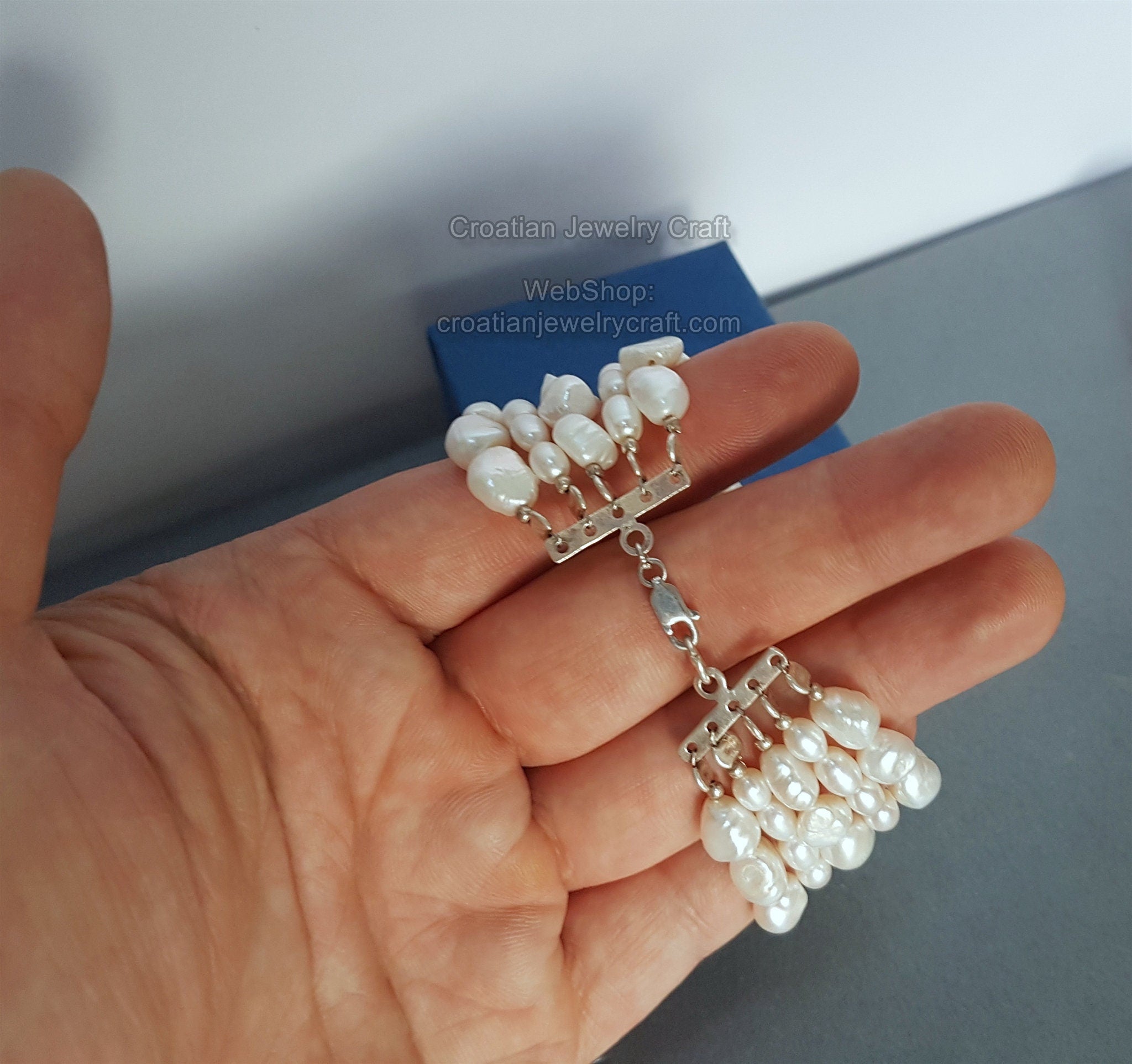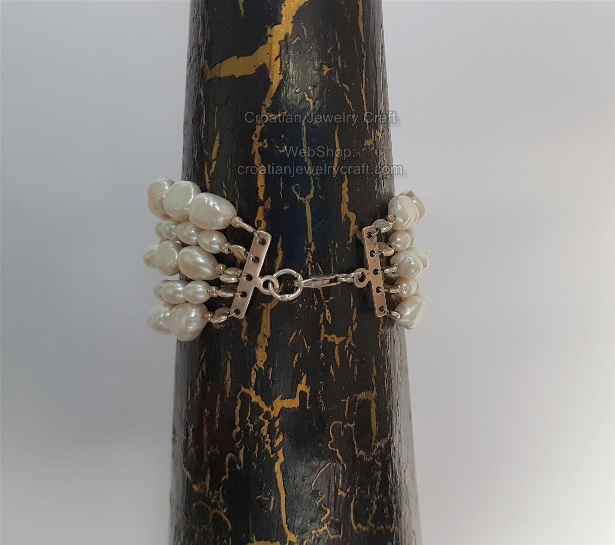 White Pearl Bracelet, Multi Strand Pearl Bracelet, Simple Natural Pearl Bridal Bracelet, Sterling Silver Freshwater Pearl Wedding Jewelry