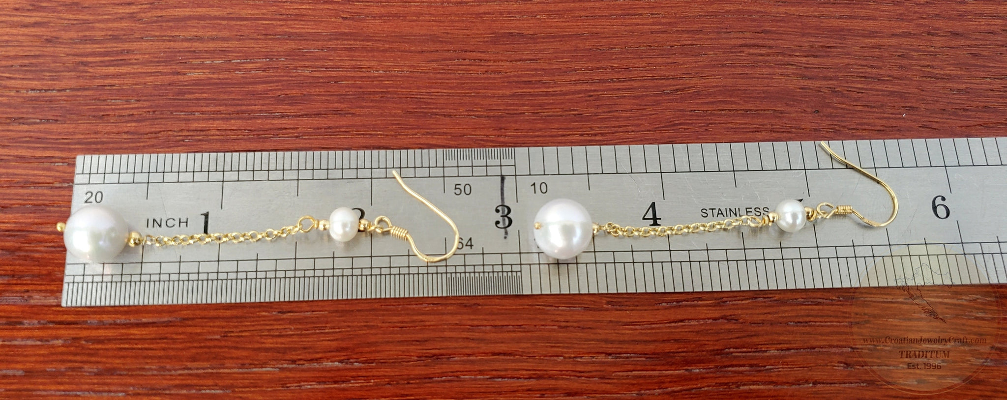 24k Gold Plated Thin Chain Earrings, Long Pearl Dangle Earrings, White Pearl Earrings, Sterling Silver Natural Pearl Wedding Jewelry