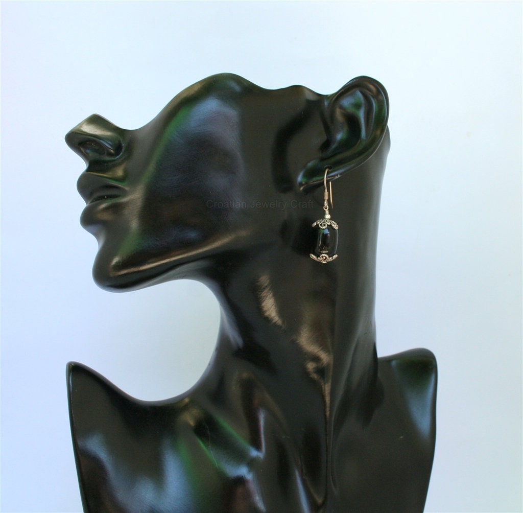 Black Stone Earrings, Faceted Onyx Earrings, Sterling Silver Earrings, Filigree Earrings, Black Earrings, Black Jewelry