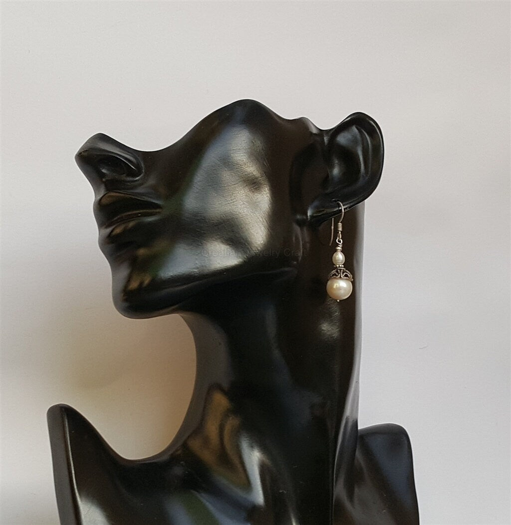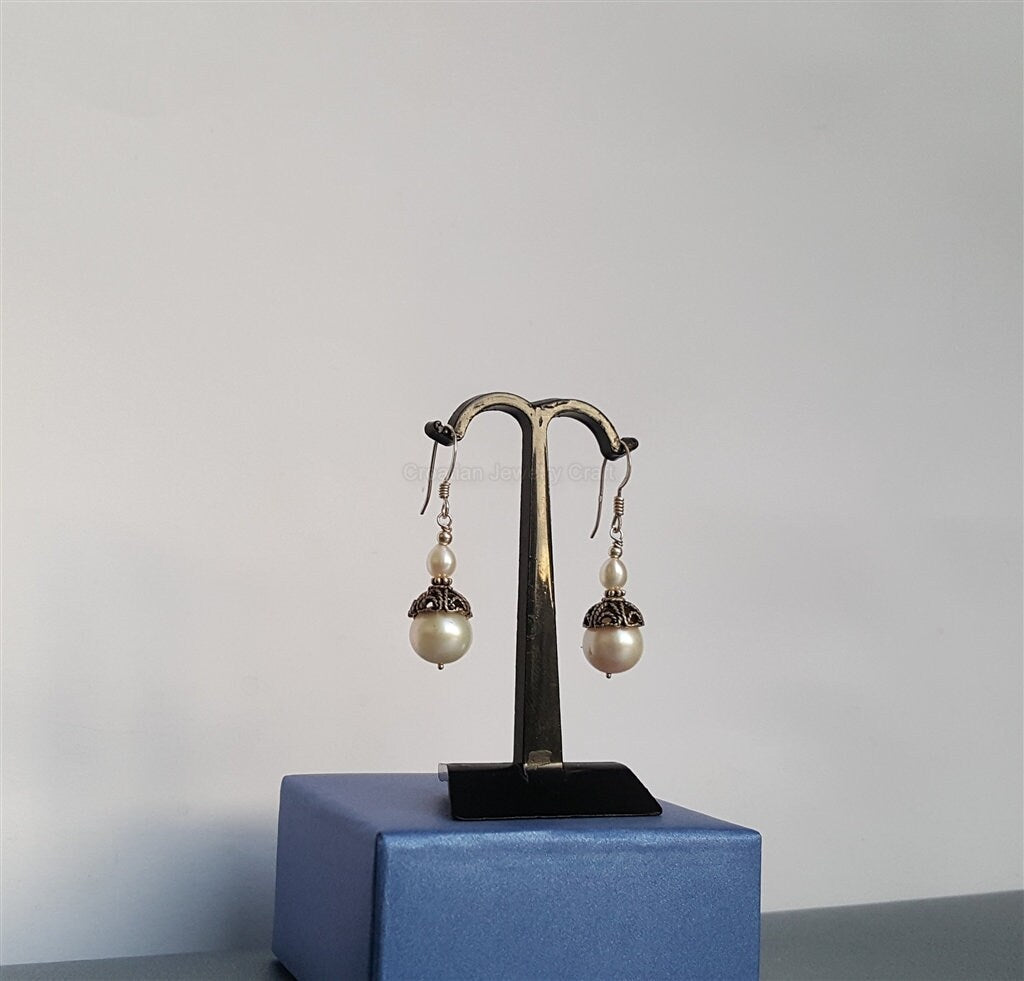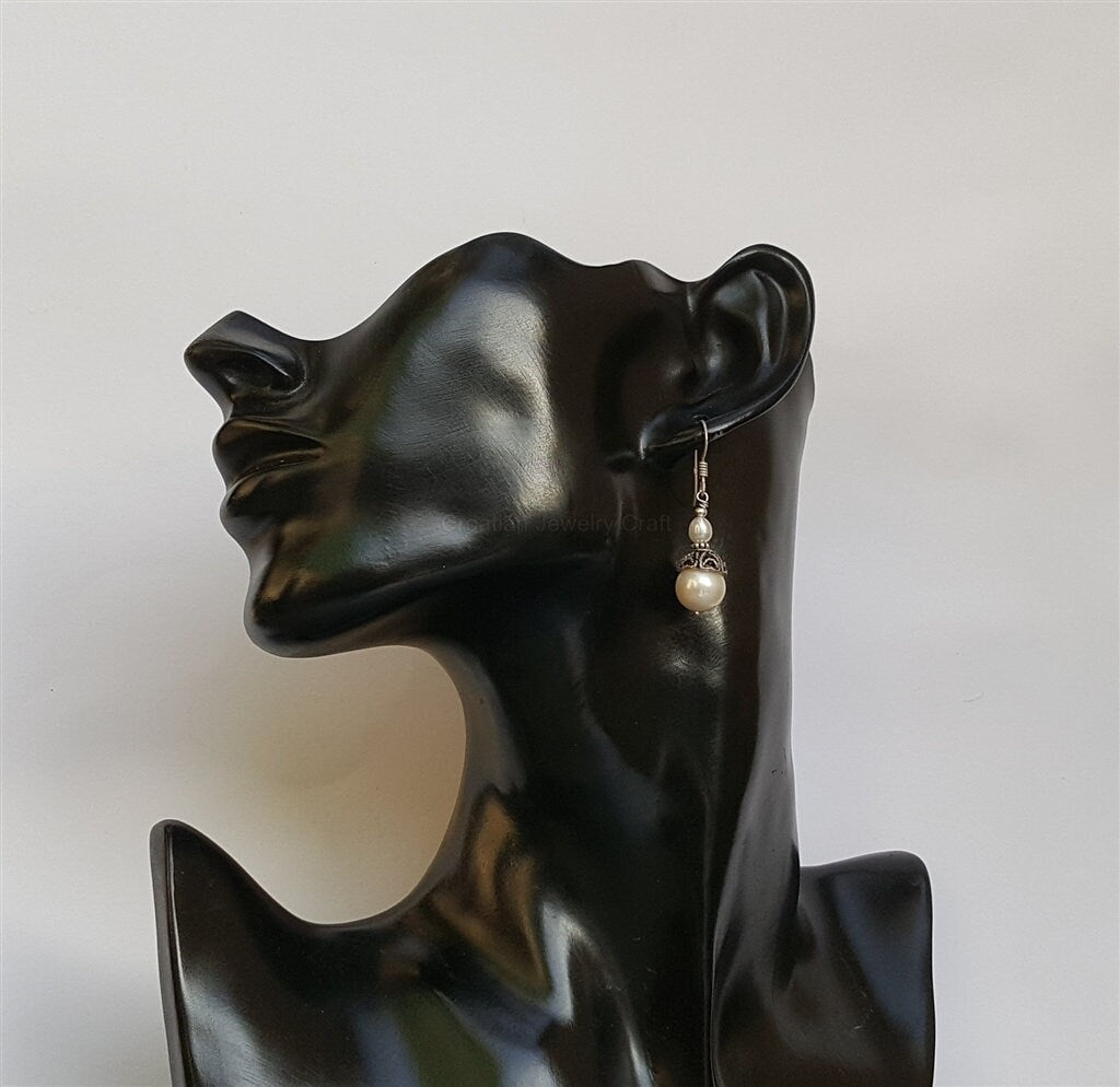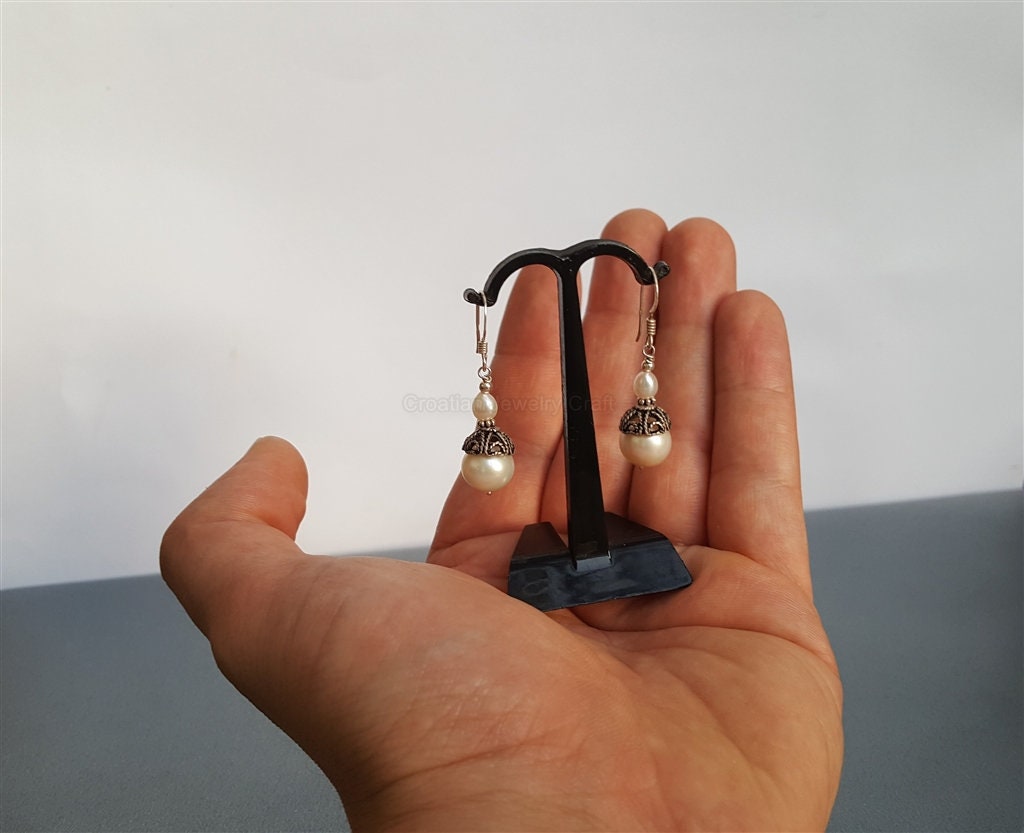 ★ Sterling silver earrings made of natural, cream-white freshwater pearls. Adorned with decorative pearl caps, earrings are handmade from solid sterling 925 silver. ★