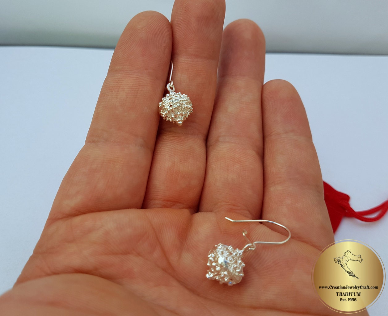 ★ Traditional Croatian filigree ball earrings. handcrafted in solid sterling silver. Replicas of 19th century heritage "botuni" jewelry from Dubrovnik - Dalmatia region.