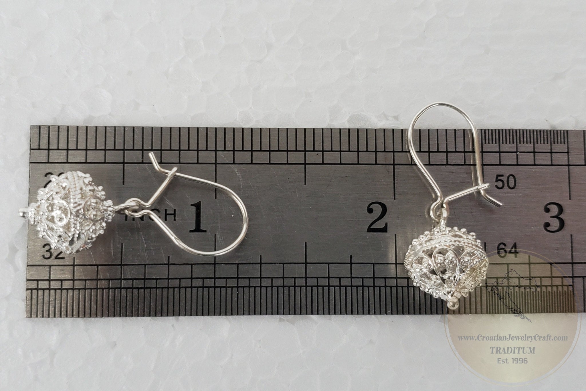 Traditional Croatian Earrings, Dangle Hook Earrings, Silver Dangle Earrings, Dubrovnik Filigree Ball Earrings, Handcrafted Vintage Jewelry