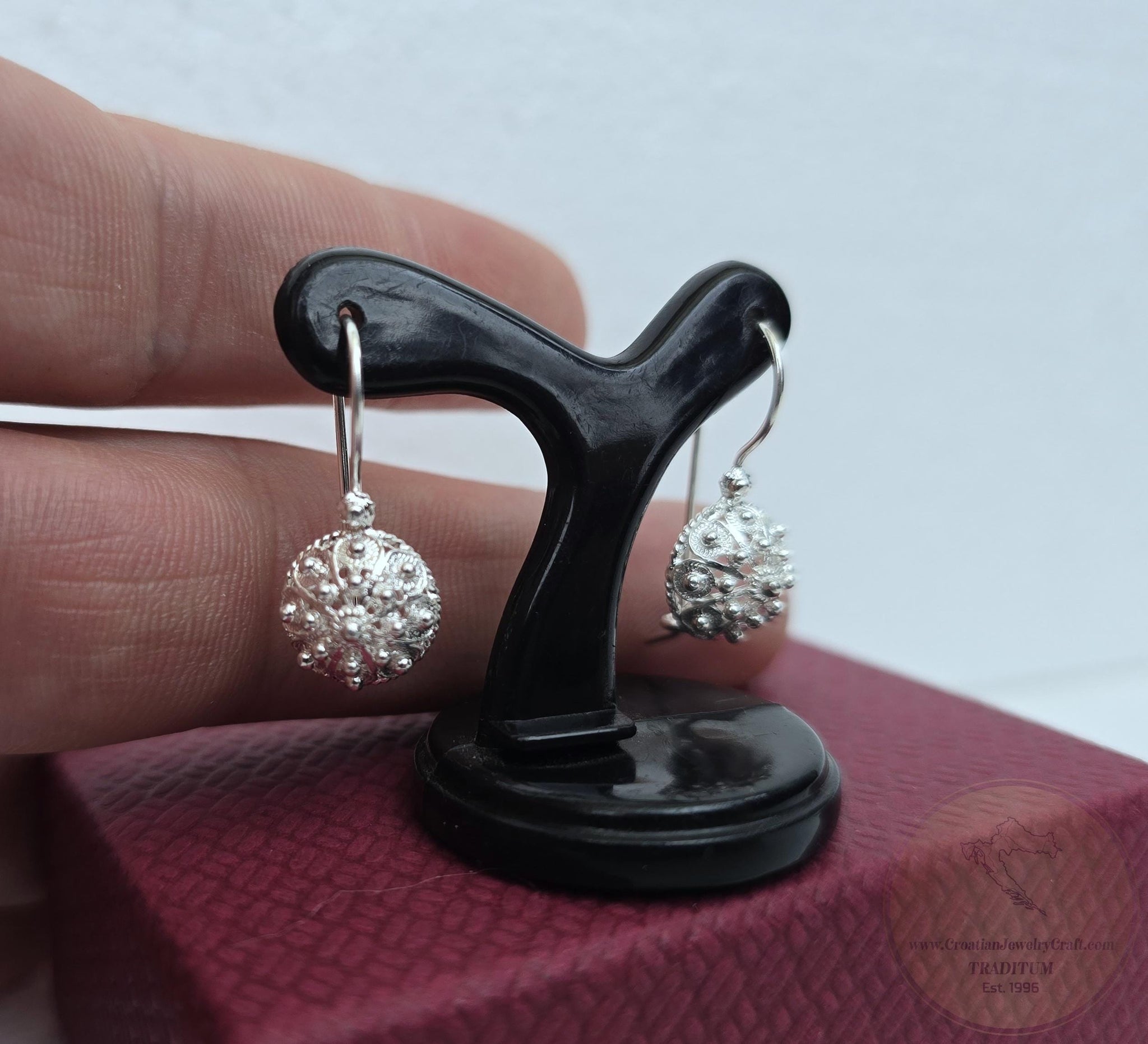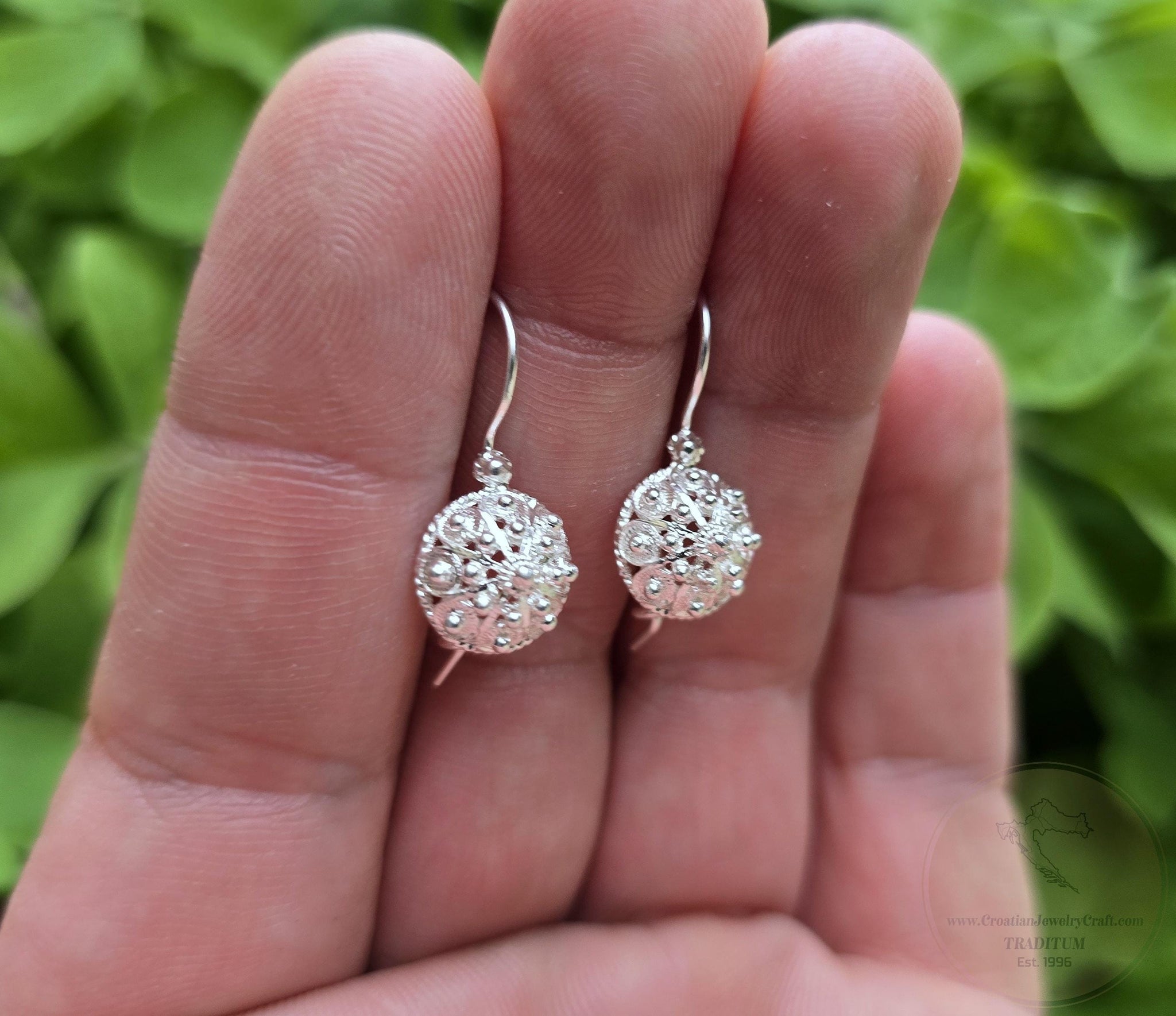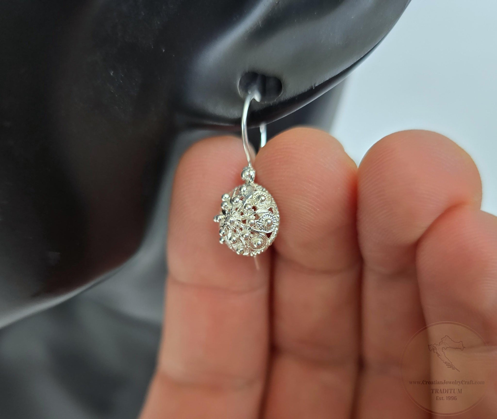 Traditional Croatian Earrings, Filigree Half Ball Earrings, Sterling Silver Earrings, Metalwork Earrings, Filigree Earrings, Wedding Jewelry