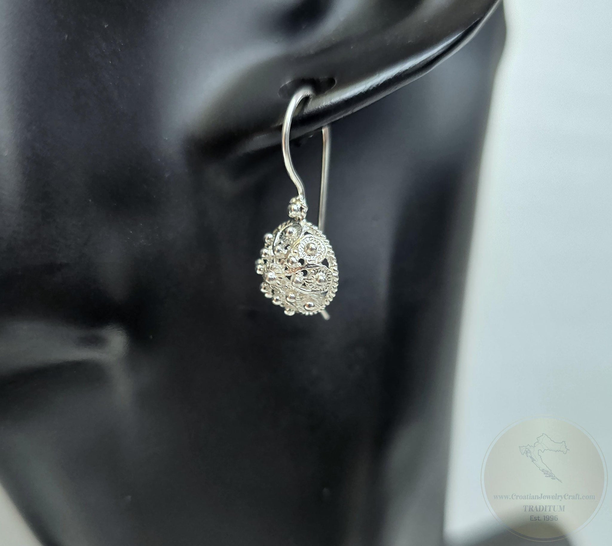 ★ Filigree half-ball drop earrings. 19th century traditional Croatian jewelry replicas. Croatian heritage jewelry from Dubrovnik- Dalmatia region. Earrings are handcrafted in solid sterling silver. ★