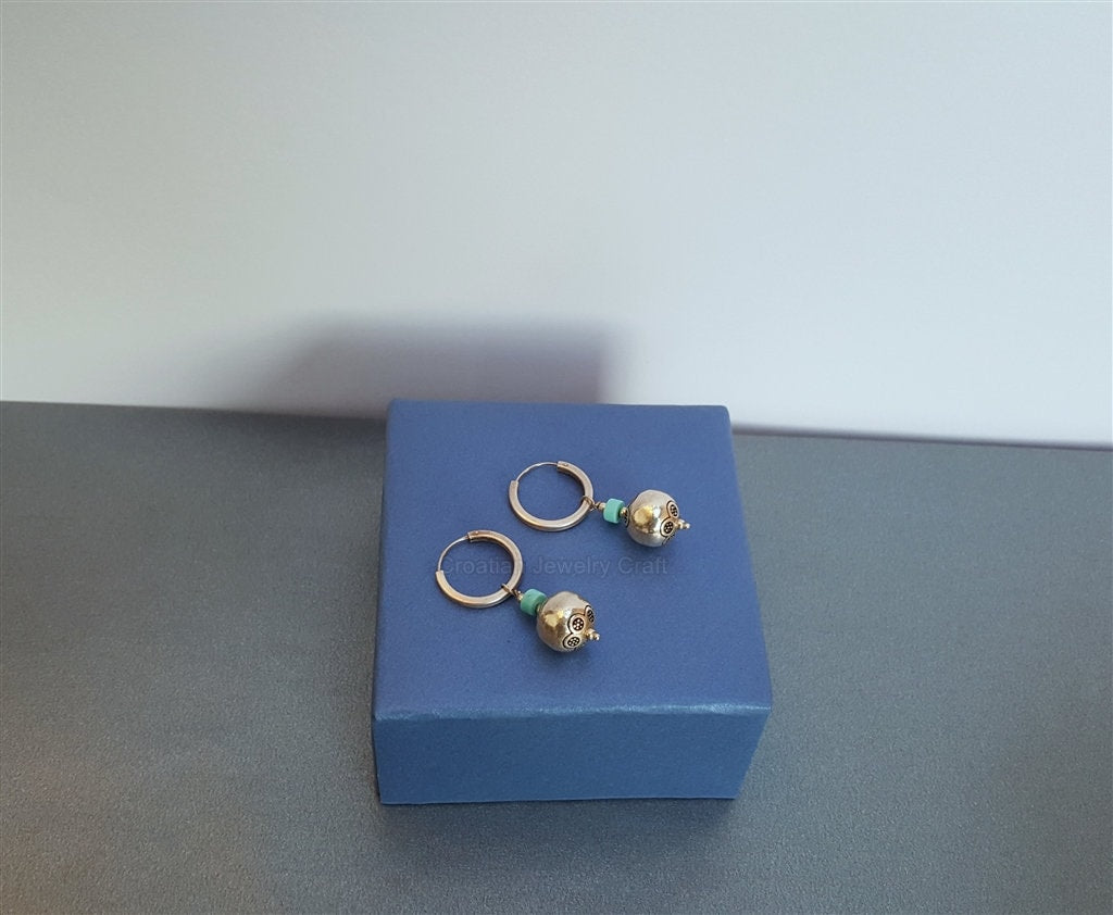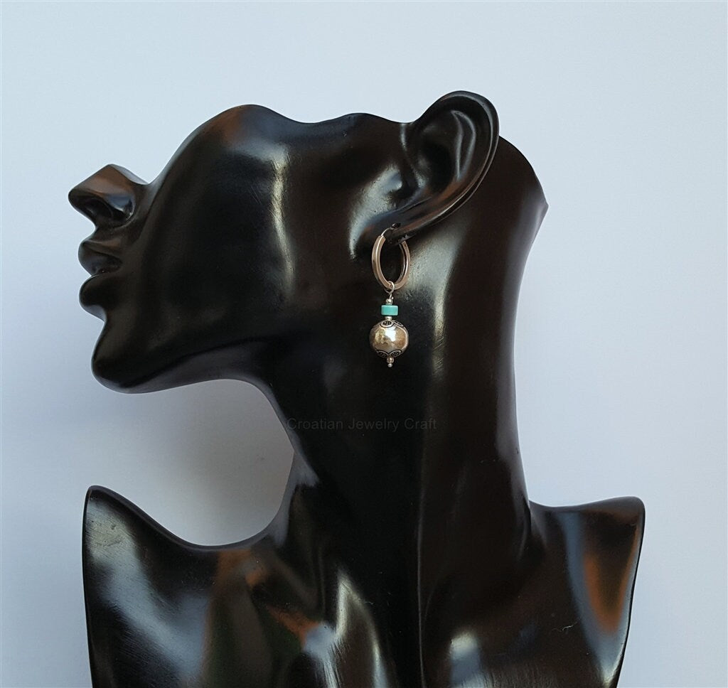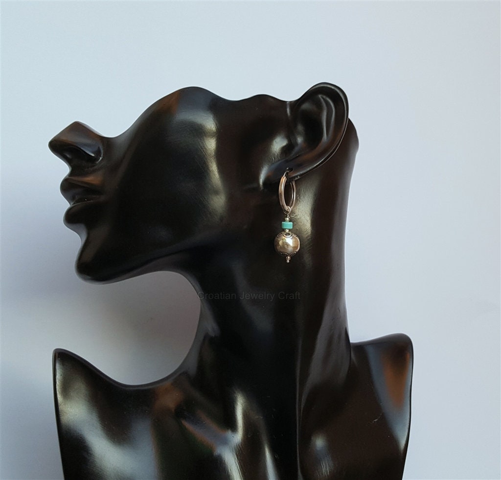 ★ Sterling silver earrings based on hoop earrings, which can be worn separately from the decorative , turquoise-ball part of the earrings, which is removable. Decorative silver ball element is adorned with natural turquoise gemstone. Earrings are handmade from solid sterling 925 silver. ★