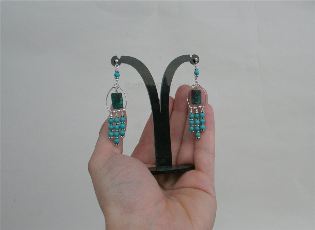Unique handcrafted earrings, made of natural turquoise gemstone. Earrings are based on a handmade frame handmade from solid sterling 925 silver.