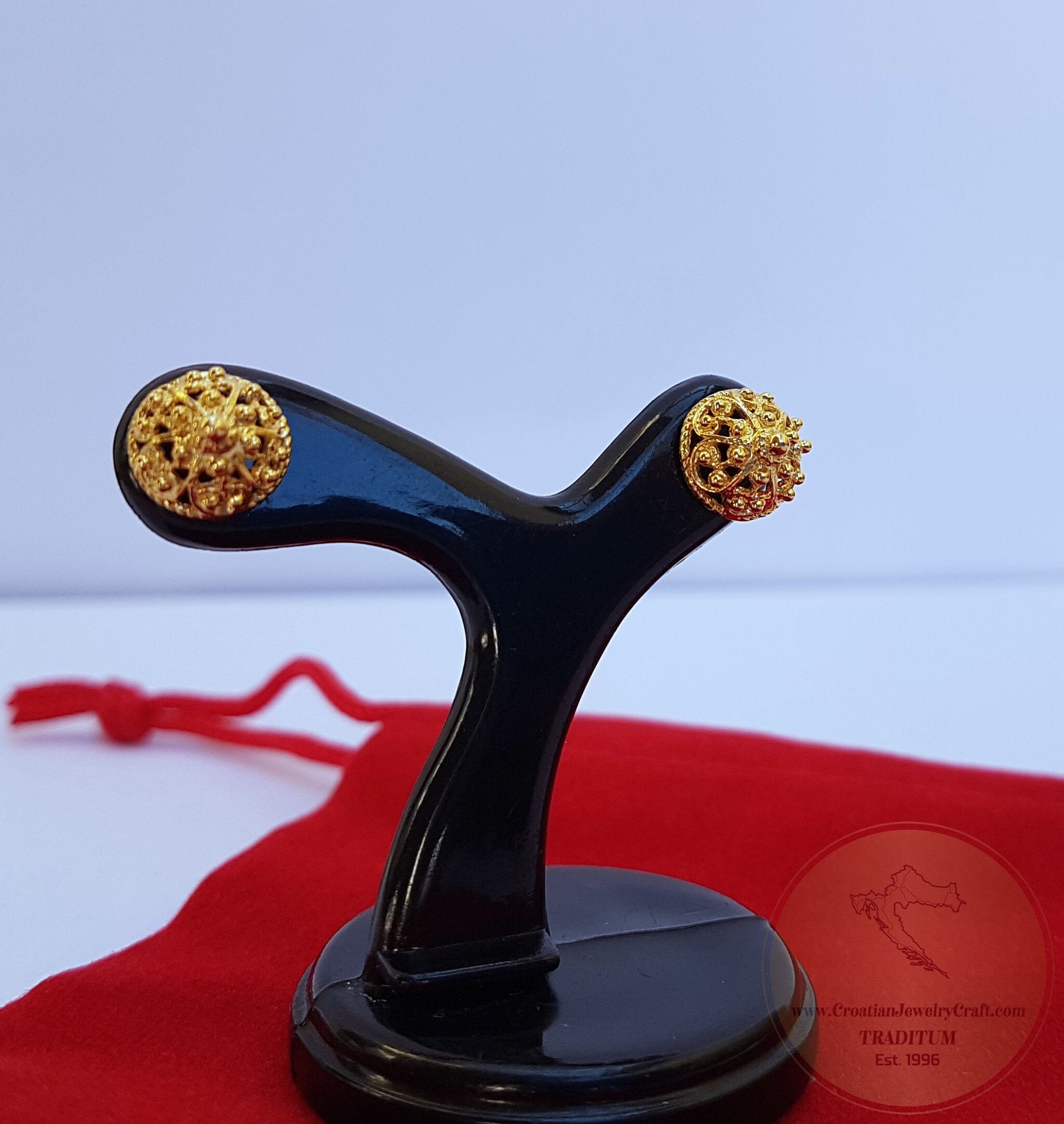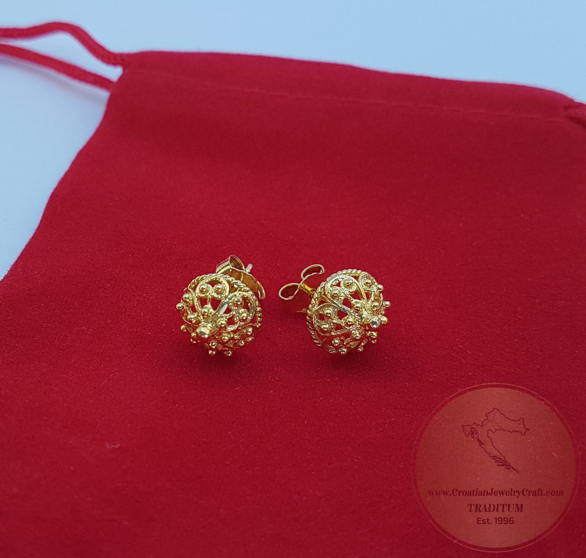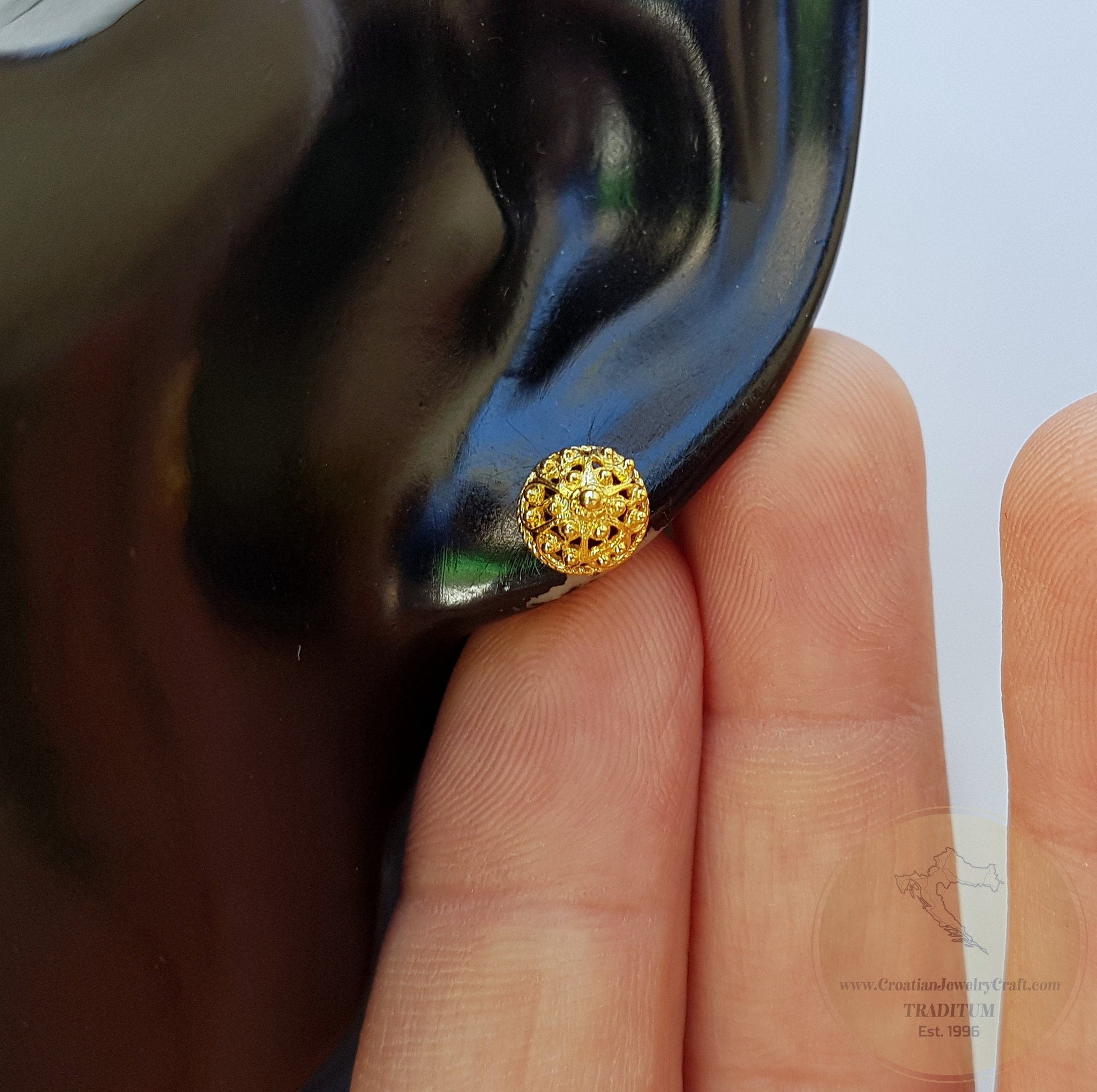 14k Gold Stud Earrings, Traditional Croatian Earrings, 14k Gold Studs, Dubrovnik Earrings, Gold Filigree Studs, Minimal Half Ball Studs
