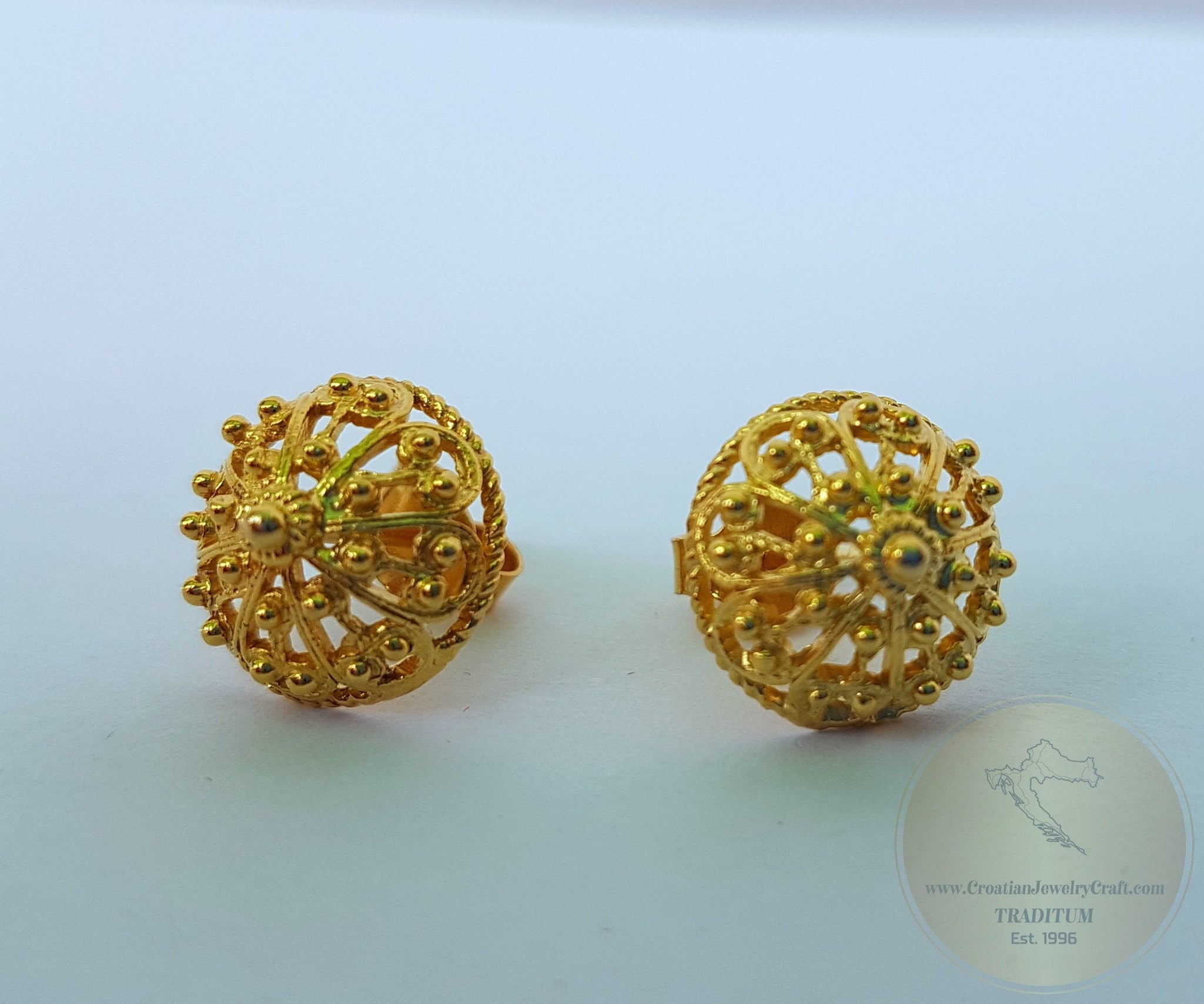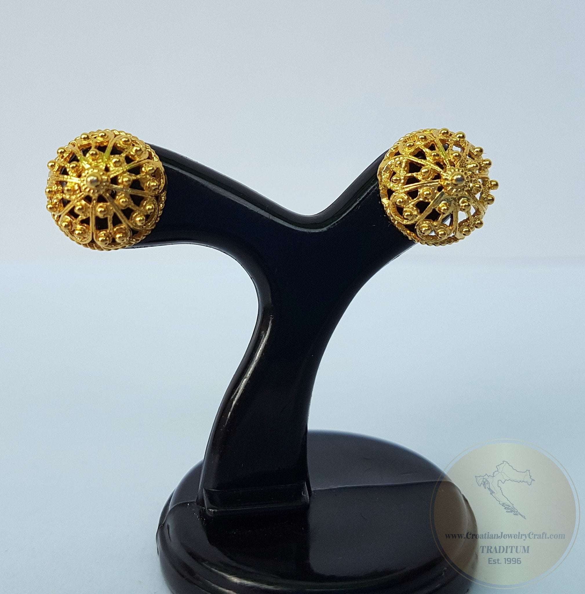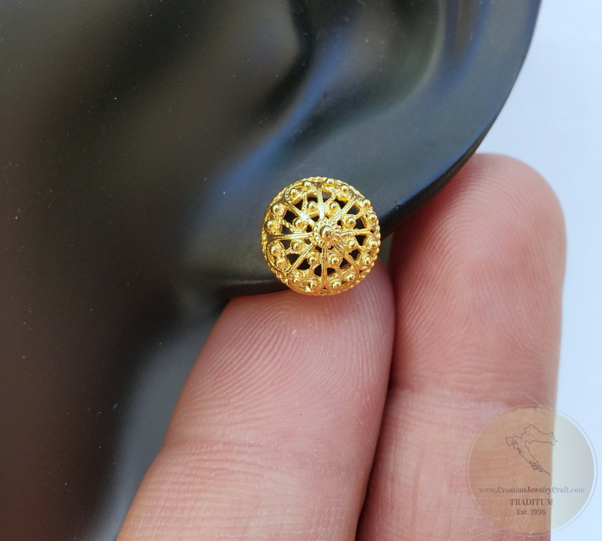 ★ Traditional Croatian filigree half-ball stud earrings handcrafted in solid 14 k gold.