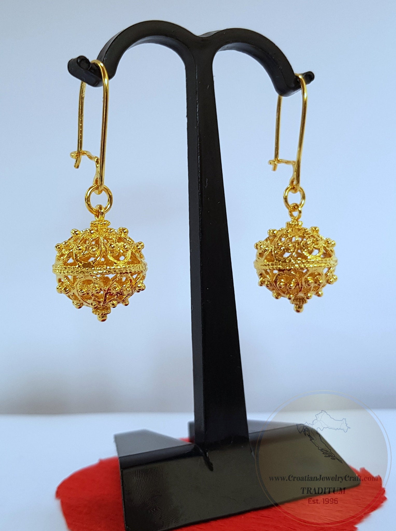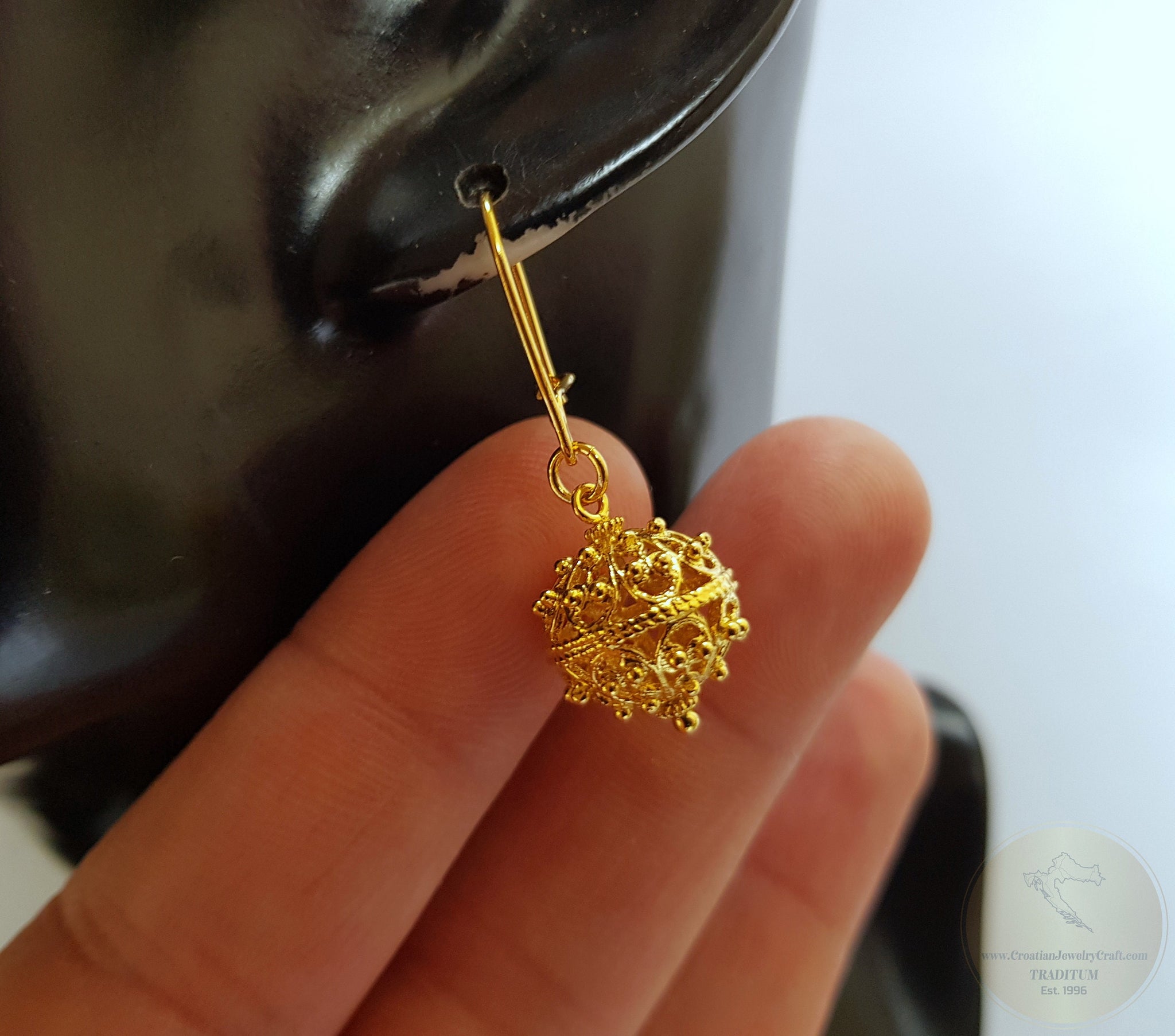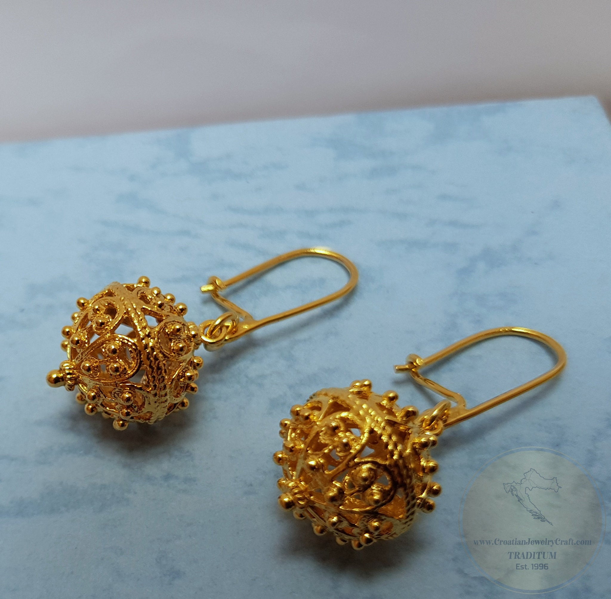 ★ Traditional Croatian filigree ball earrings, handcrafted in solid 14 k gold. Replicas of 19th century Ethnic, Heritage jewelry from Dubrovnik - Dalmatia region.