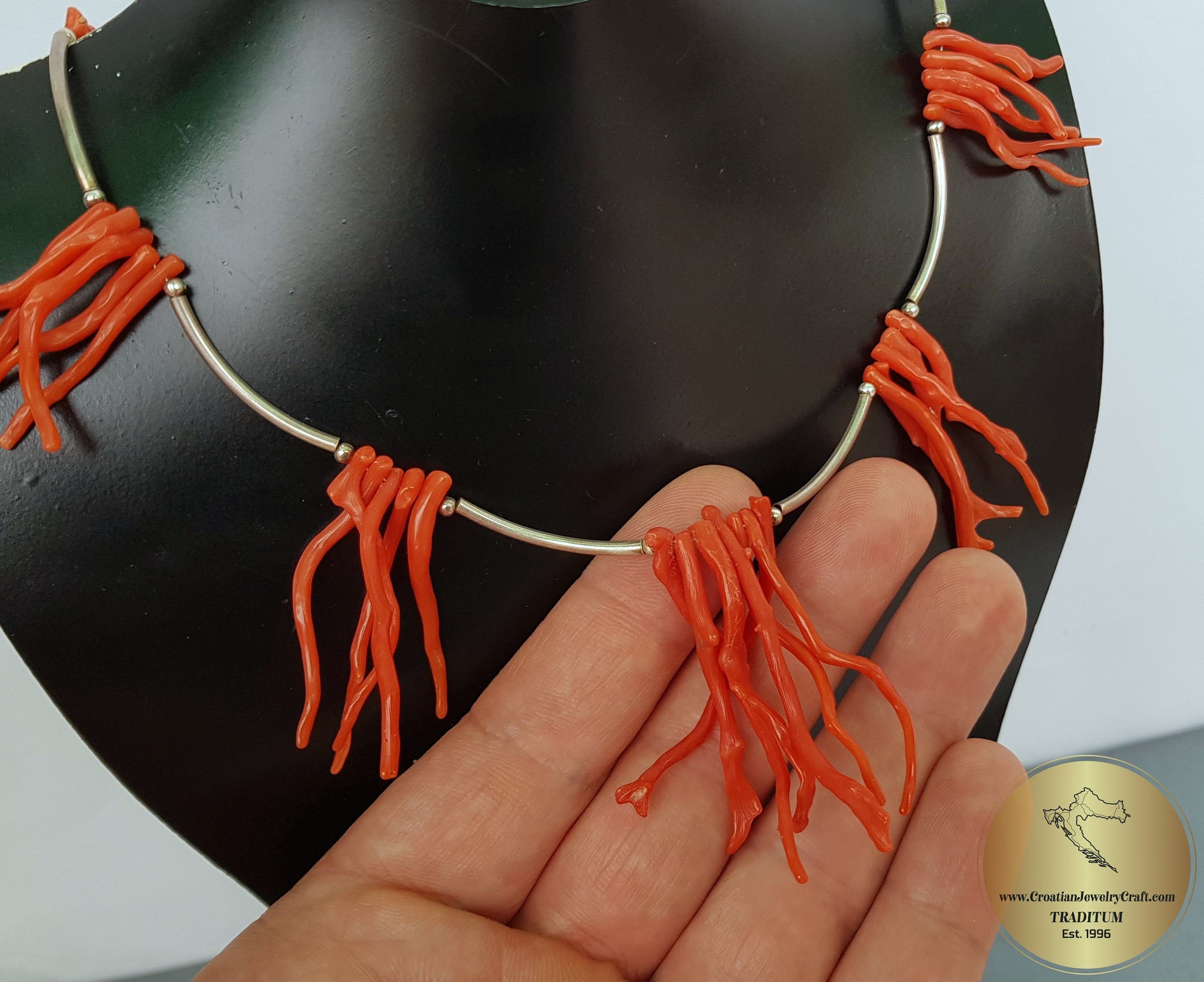 ♥ Meticulously crafted statement necklace made from the hand-picked, unique branches extracted from natural, precious Mediterranean coral. This coral is all natural and hasn't been treated or dyed in any way.