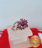 ◎ Beautiful, colorful statement gemstone ring. Handcrafted from red ruby gemstone, in solid sterling 925 silver. Marked 925 on the inside of ring band. ◎