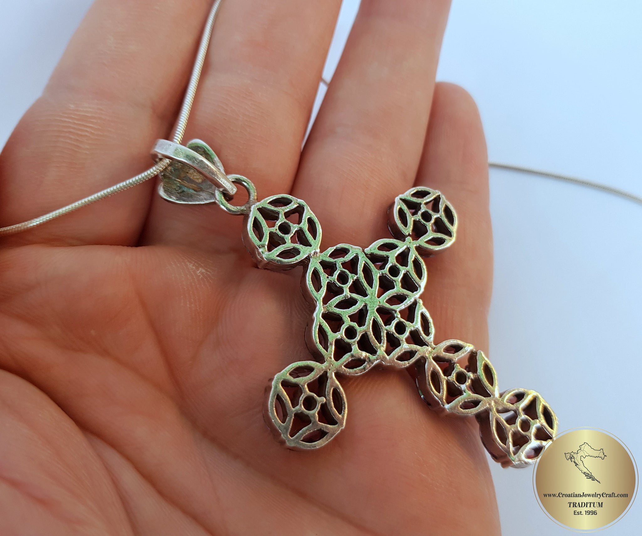 ◎ Beautiful cross pendant. Handcrafted from natural amethyst gemstone in combination with tiny small marcasite gemstone, used to emphasize the design.