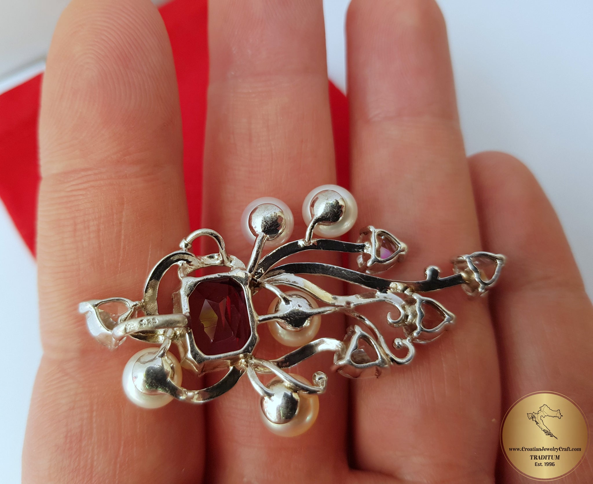◎ Beautiful, colorful reacme-shaped pendant. Made from combination of natural gemstones and freshwater pearl in solid sterling 925 silver.