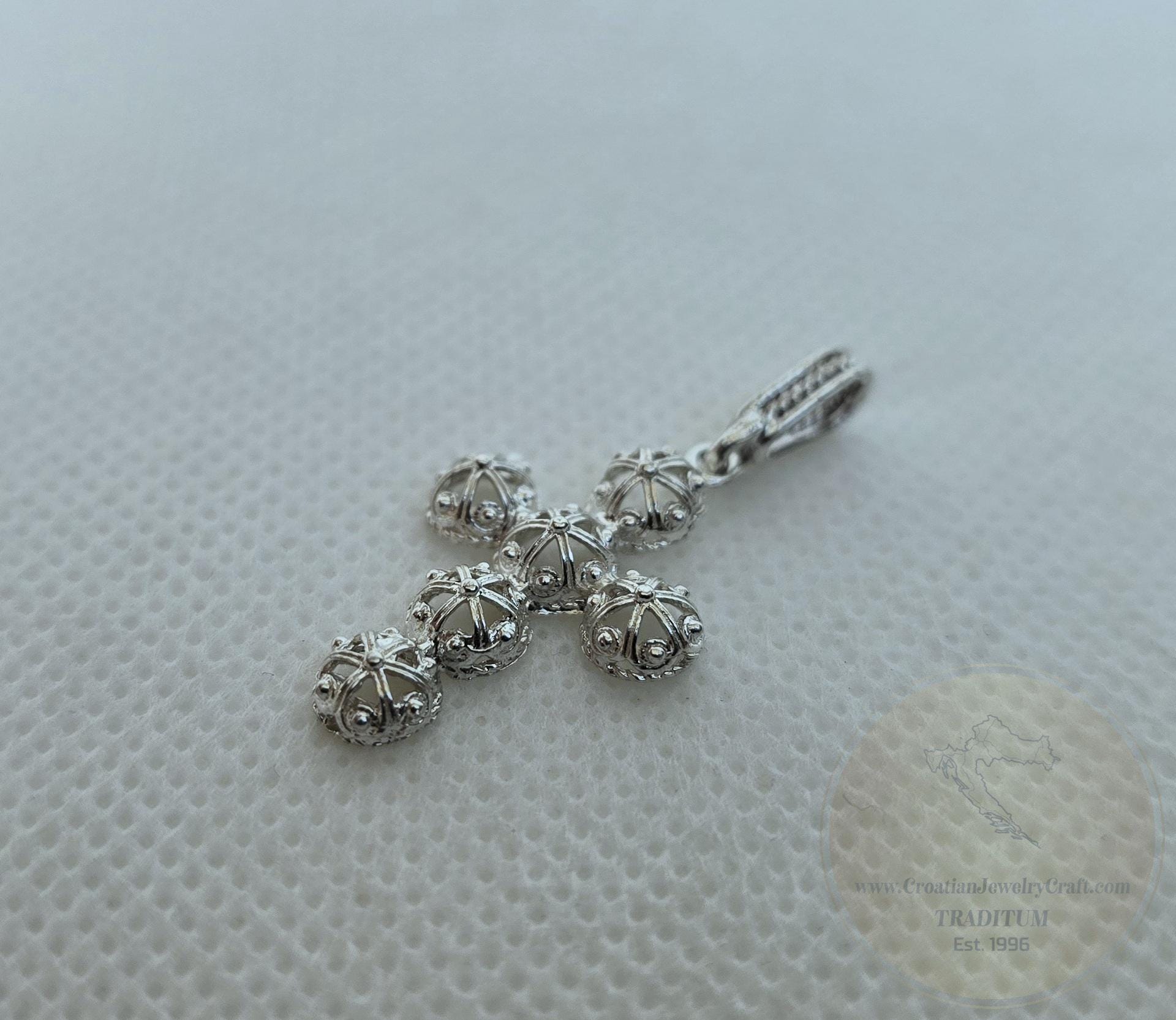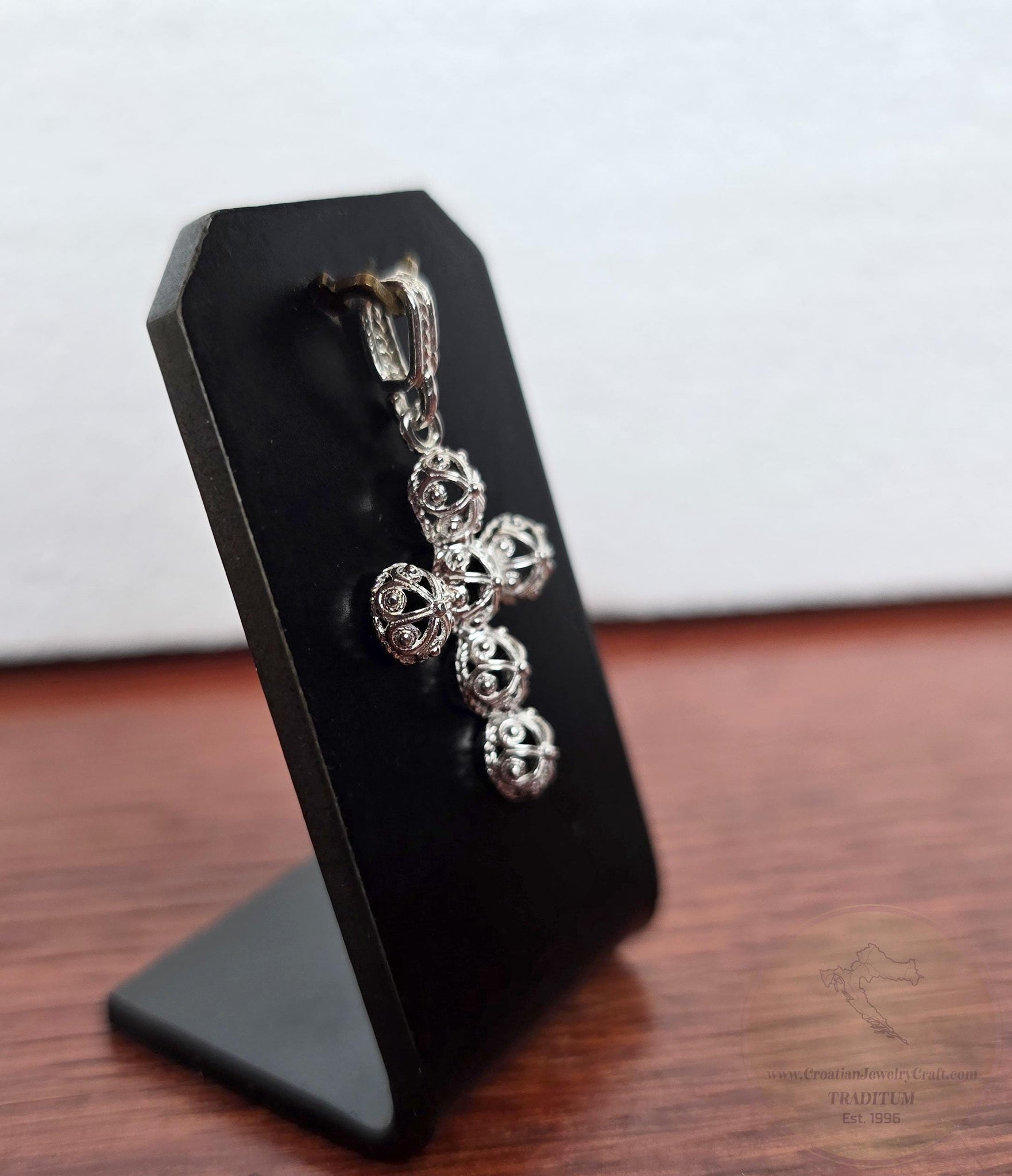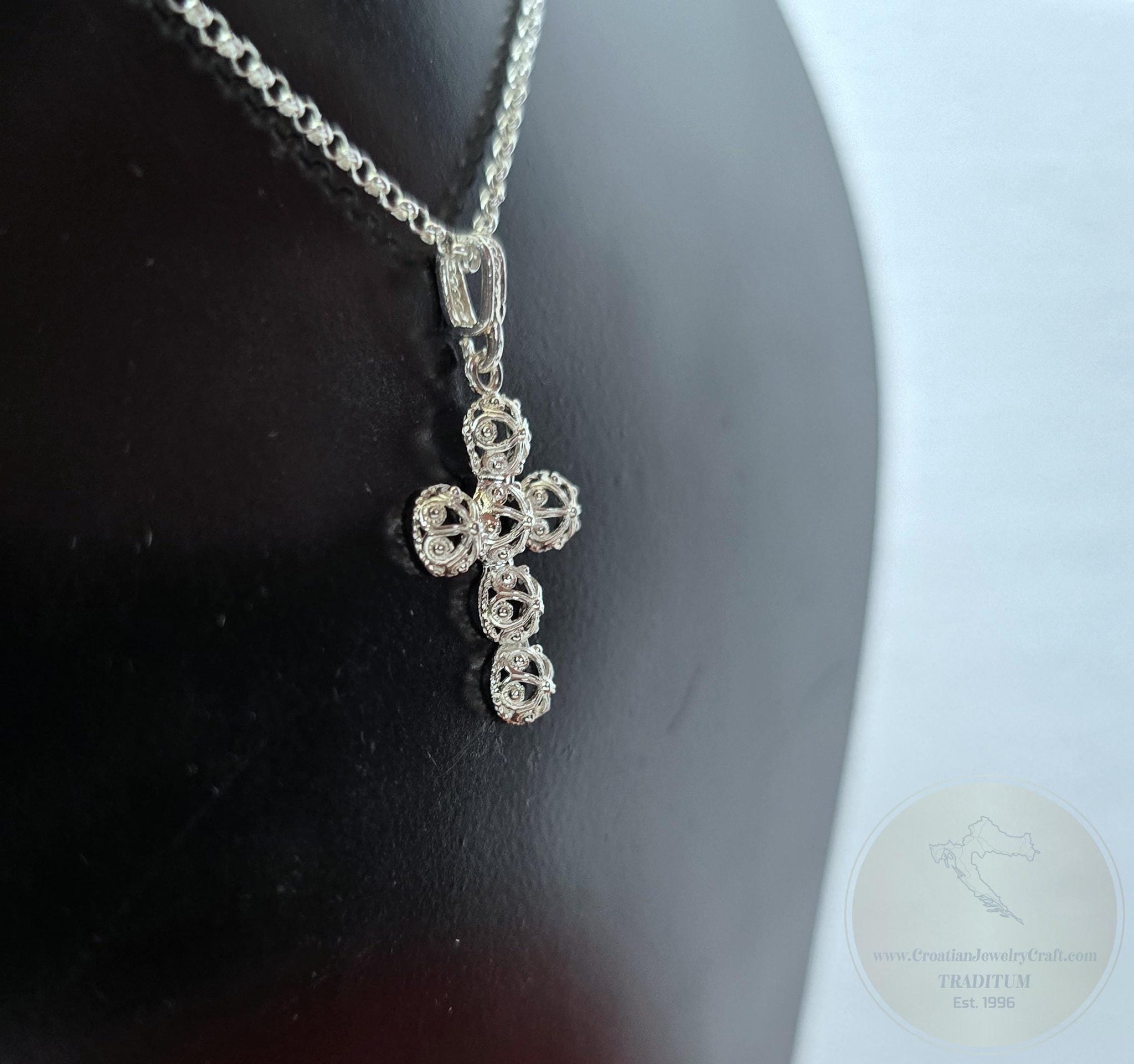 Traditional Croatian Cross Pendant, Minimalist Filigree Cross Pendant, Sterling Silver Dainty Metalwork Cross, Wedding Jewelry, Dubrovnik