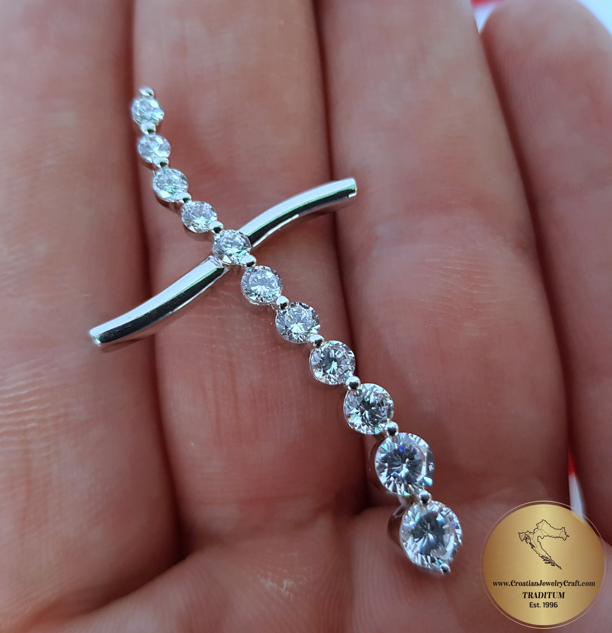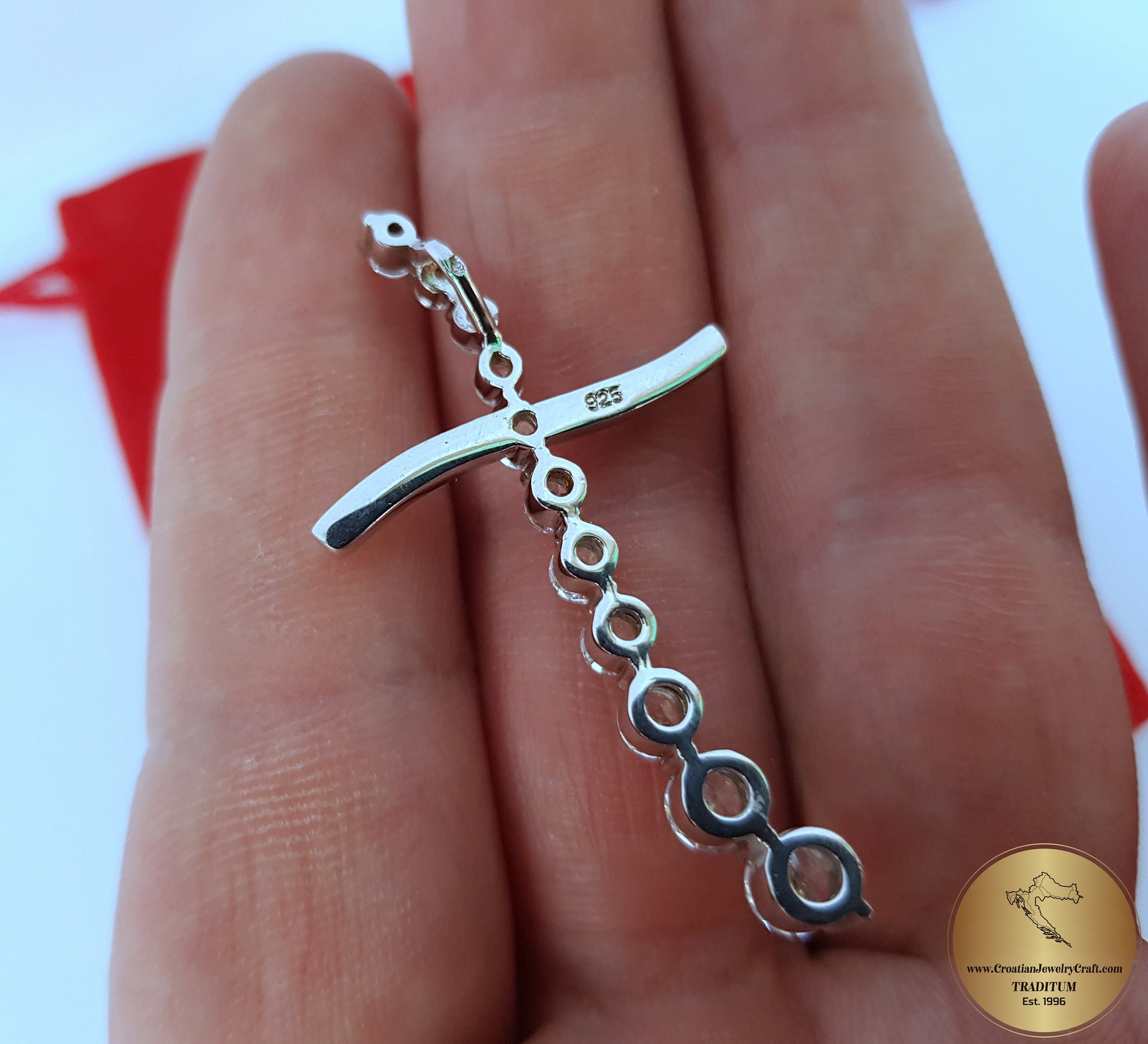 ◎ Beautiful cross pendant. Handcrafted from white zircon gemstone in solid sterling 925 silver. ◎