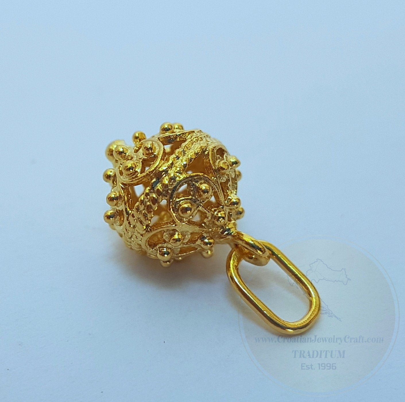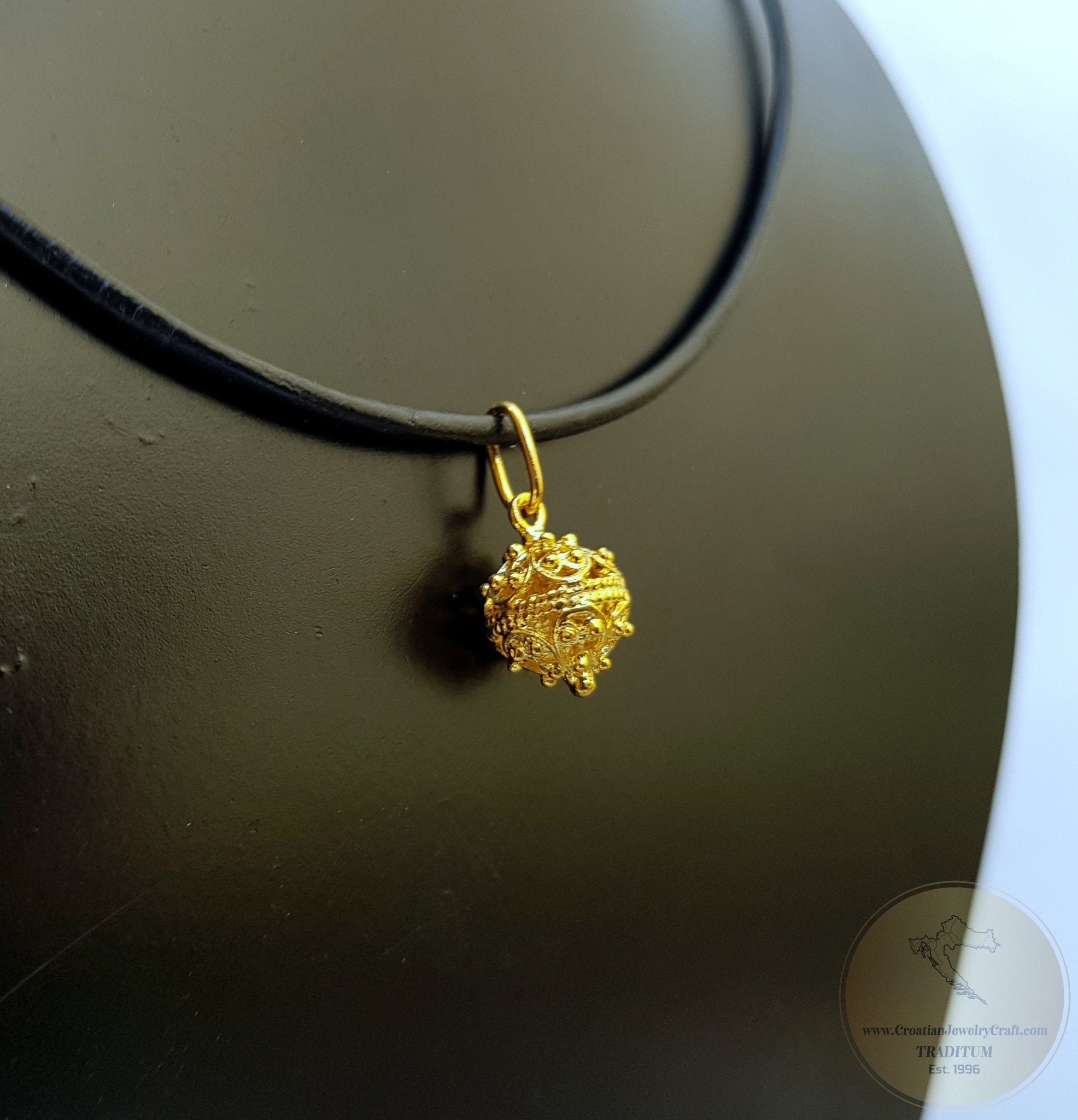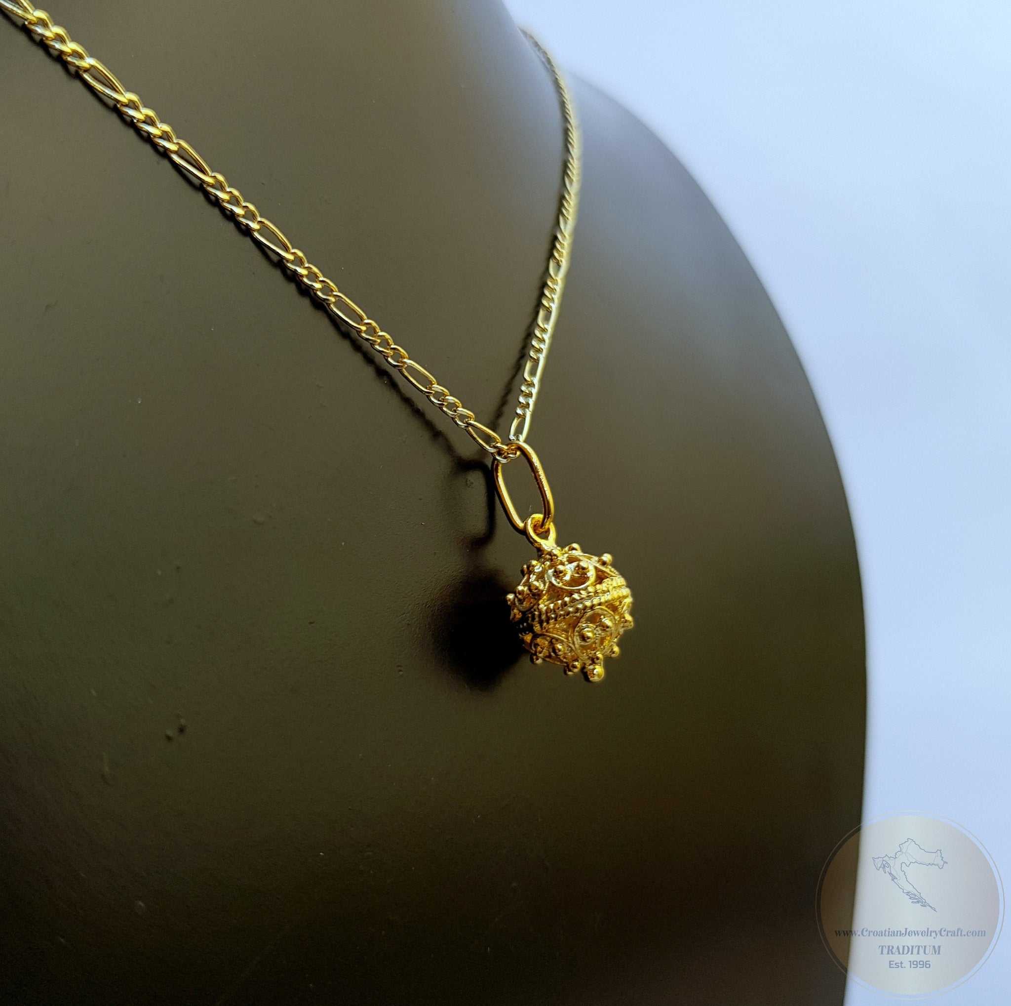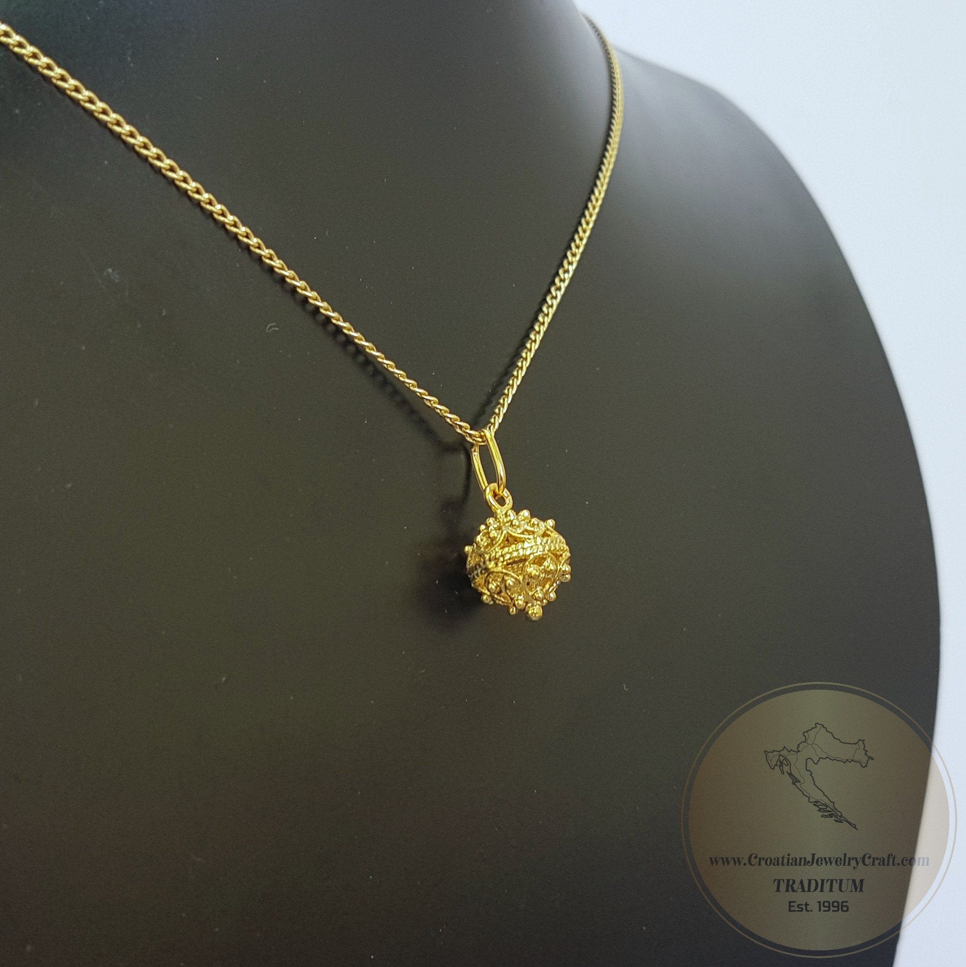 14k Gold Minimalist Pendant, Croatian Filigree Ball Pendant Necklace, Solid Gold Dainty Pendant, Dubrovnik Filigree Pendant