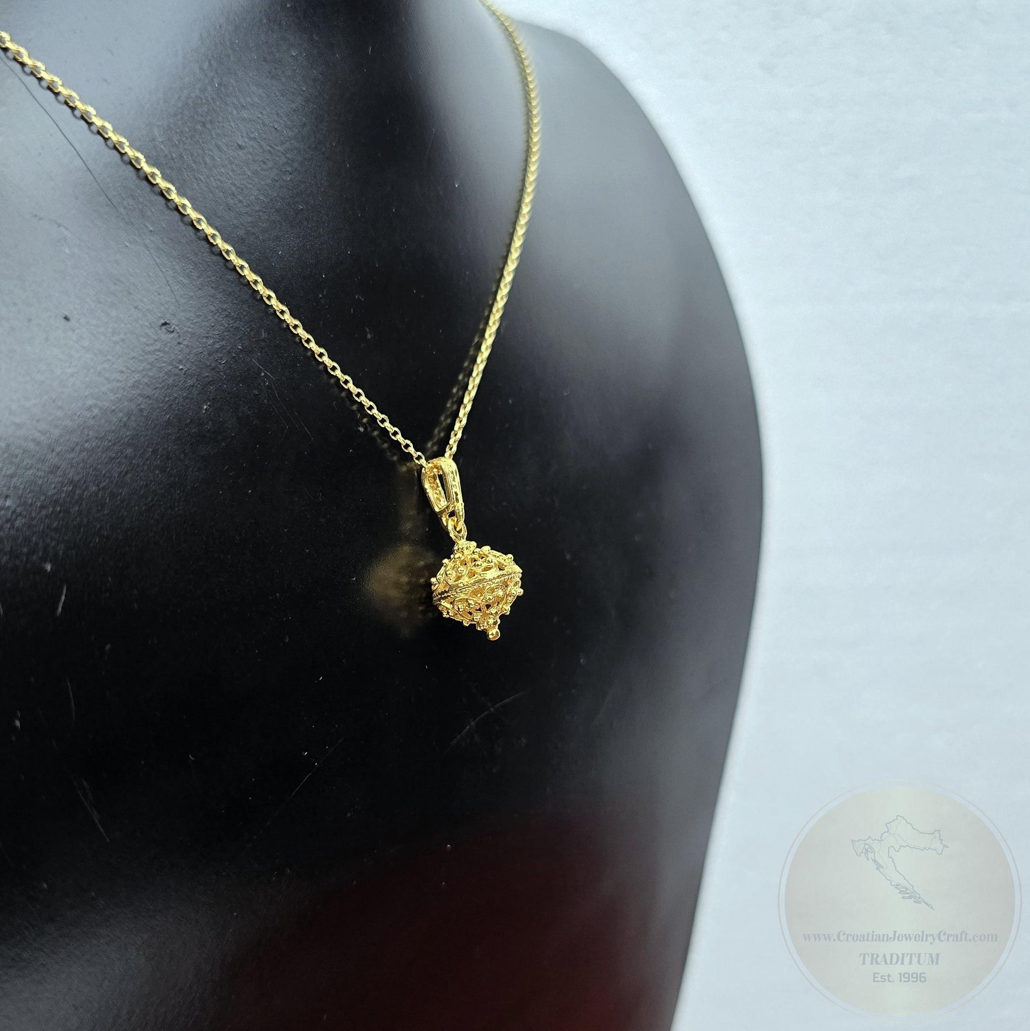 ★ Filigree ball pendant made of solid sterling 925 silver, which is plated with 24k gold. Replica of the 19th century traditional Croatian jewelry from Dalmatia- Dubrovnik region. ★