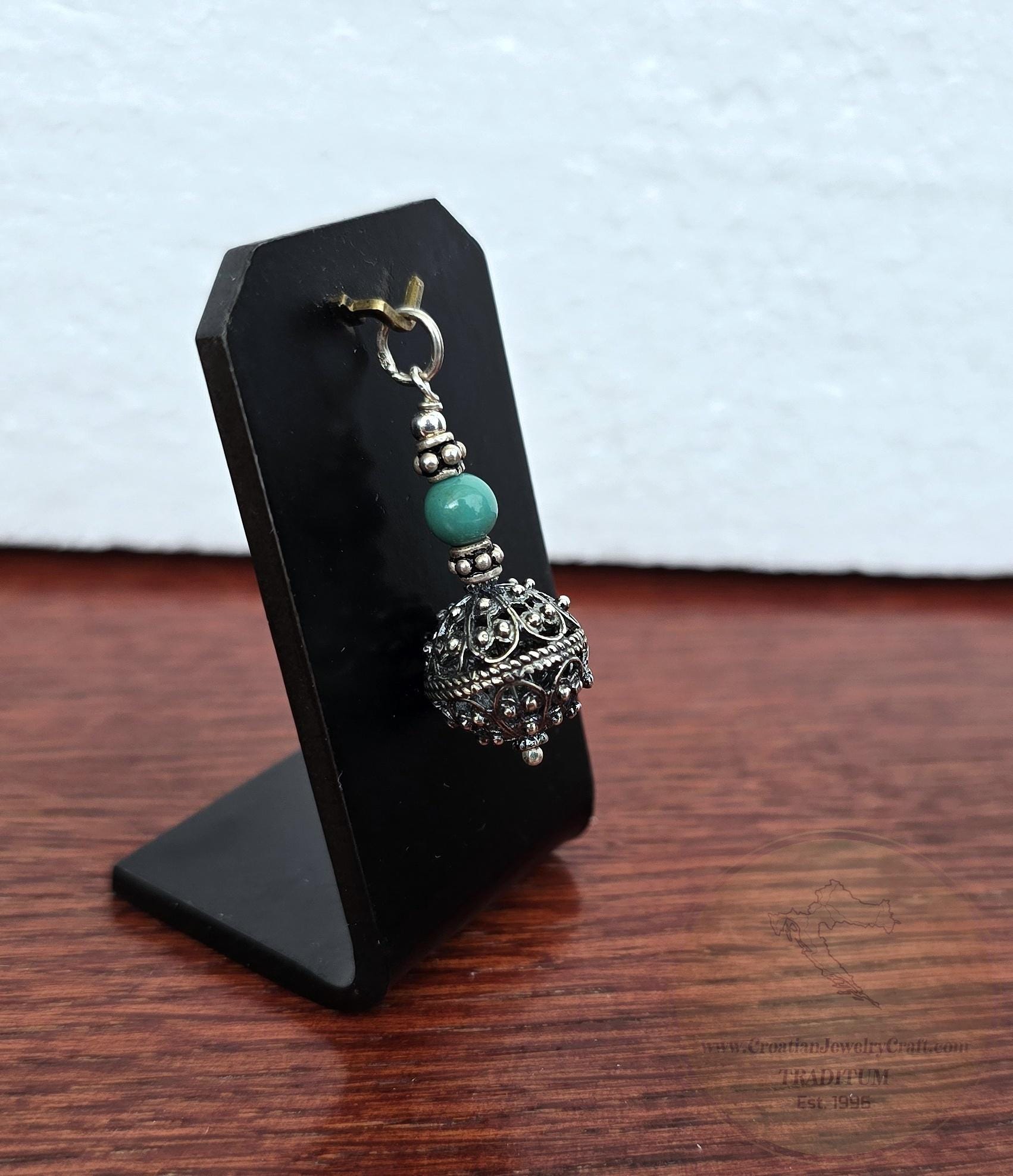 Traditional Croatian Jewelry, Ethno Dubrovnik Jewelry, Turquoise Gemstone Pendant, Sterling Silver Filigree Ball Pendant, Filigree Pendant